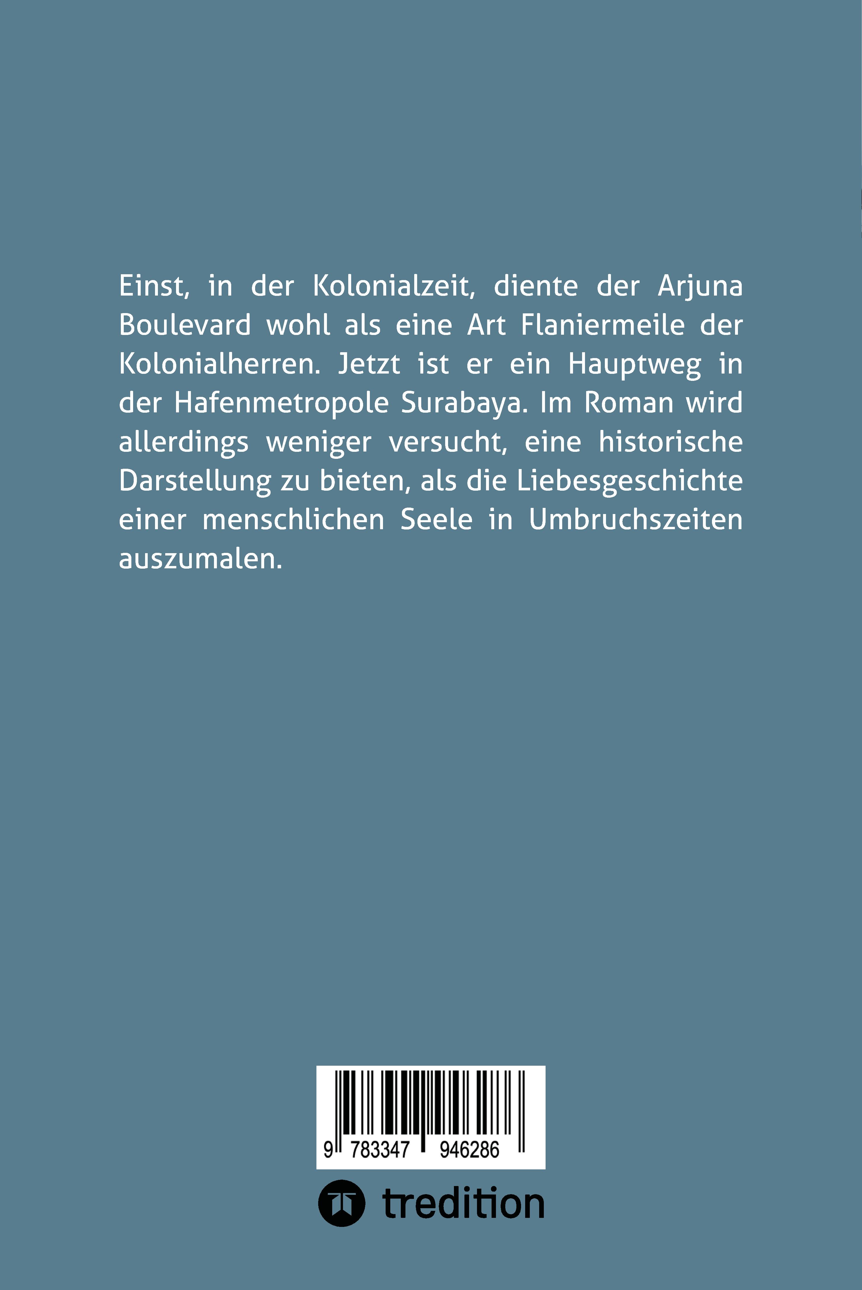 Der Roman spielt hauptsächlich in Japan und Indonesien, wobei die Vorstellungskraft maßgeblich ist. Die zwei Hauptfiguren (deutsch und japanisch), die sich lieben, ohne es auszusprechen, setzen sich von Kyoto nach Indonesien ab. Nach einer außer Kontrolle geratenen Kundgebung in Kyoto können sie auf Java zuerst einmal bei einem Deutschen unterkommen, der sich in Malang mit der Biografie von Max Dauthendey auseinander setzt. In Malang regt der Berg Arjuna ihre Vorstellungskraft an, in Surabaya ist es der 'Arjuna Boulevard'.