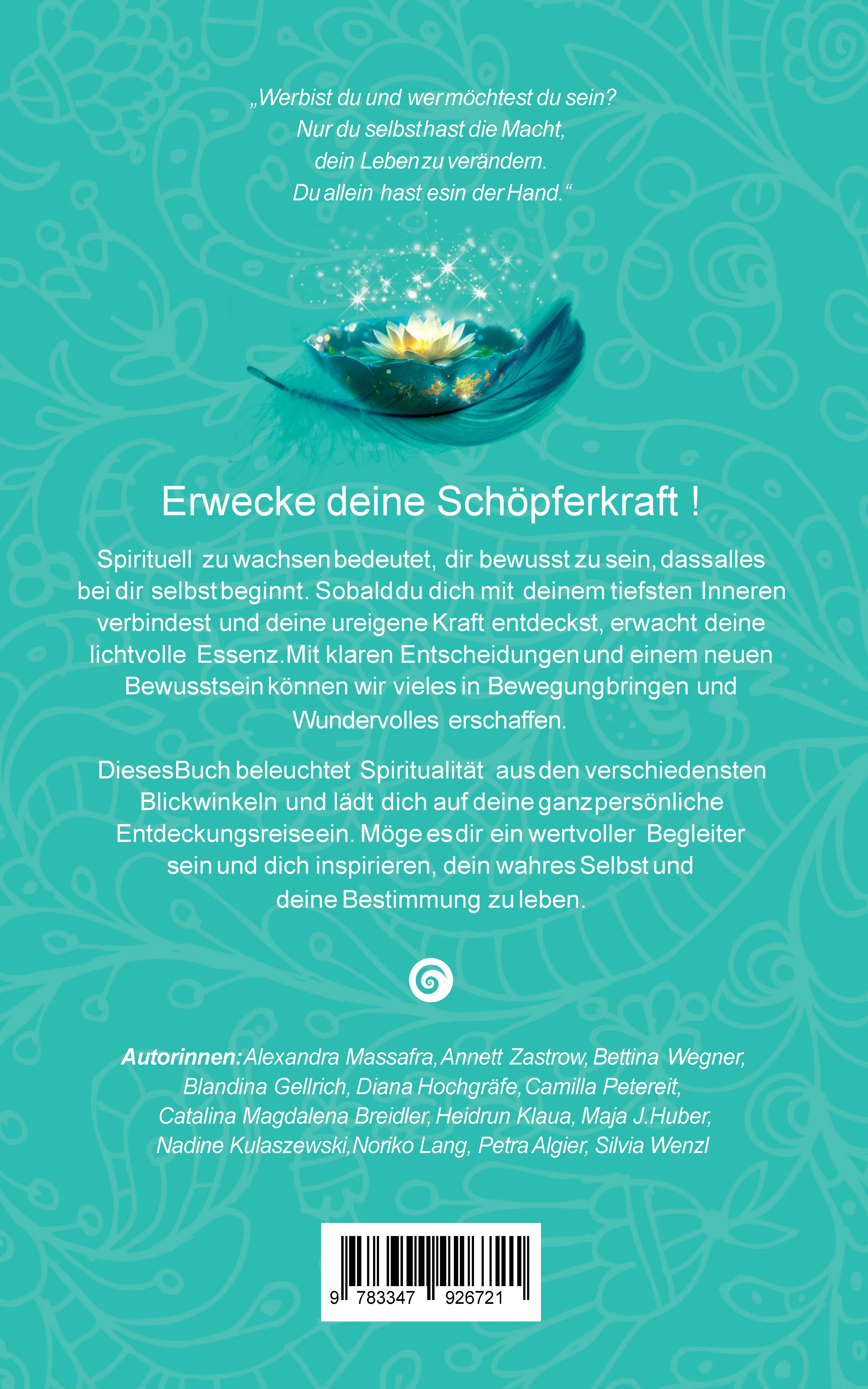 | Schlagworte | Achtsamkeit • Bewusstseinswandel • Chakren • Chakrenheilung • Craniosacrale Therapie • das wahre Selbst leben • energetische Körperarbeit • Energiearbeit • ganzheitliches Bewusstsein • Gesichtlesen • Heilung und Wachstum für Mensch und Tier • höheres Selbst • Körper, Geist, Seele • Lebensglück • Manifestieren • Meditation • Persönliches Wachstum • Persönlichkeitsentwicklung • Schöpferkraft • Seelenkommunikation • Seelenleben • Spiritualität • Spiritualität im Alltag • Spiritueller Ratgeber • spirituelles Wachstum • Transformationsreise • Vegane Ernährung • Verbundenheit • Yoga |