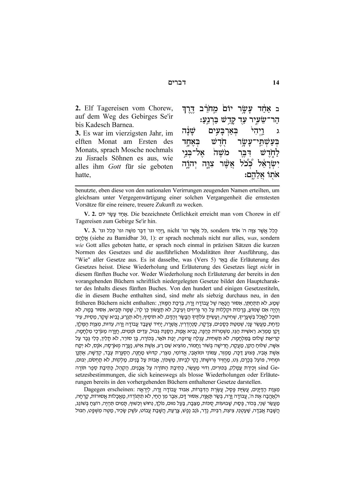 Die fünf Bücher der Tora – Dewarim das 5. Buch Mose mit Haftarot übersetzt und erklärt von Samson Raphael Hirsch und seinem Sohn Mendel Hirsch. Der klassische Kommentar des deutschen orthodoxen Judentums in moderner Schrift.