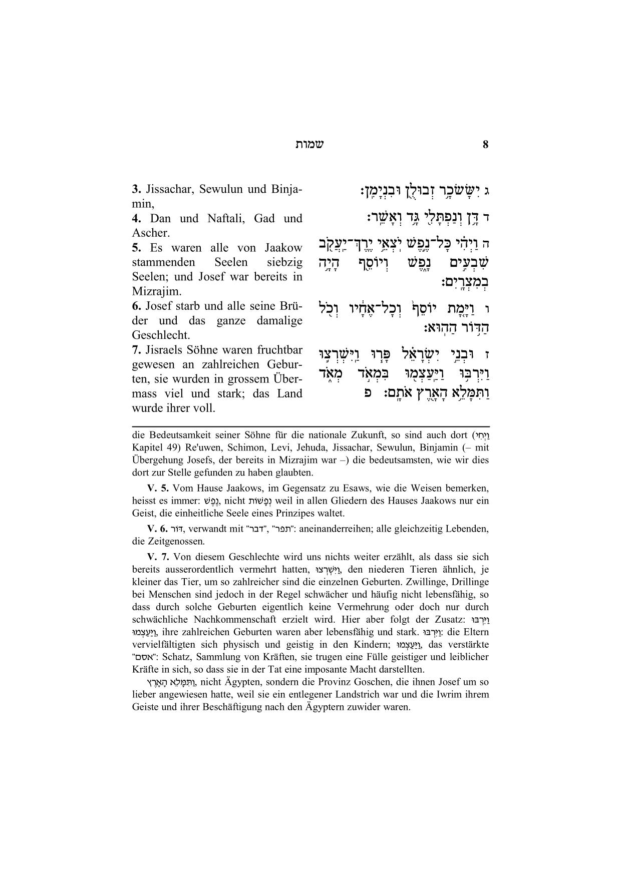 Die fünf Bücher der Tora – Schmot das 2. Buch Mose mit Haftarot/Propheten übersetzt und erklärt von Samson Raphael Hirsch und seinem Sohn Mendel Hirsch. Der klassische Kommentar des deutschen orthodoxen Judentums in moderner Schrift.