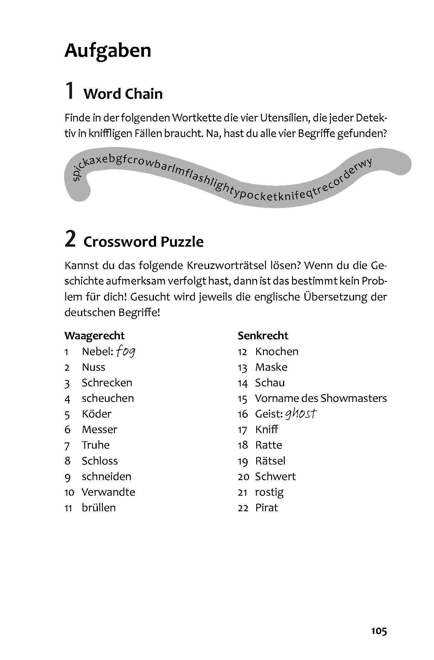 - Trainiere Wortschatz, Verständnis und Grammatik mit zahlreichen Detektivübungen.