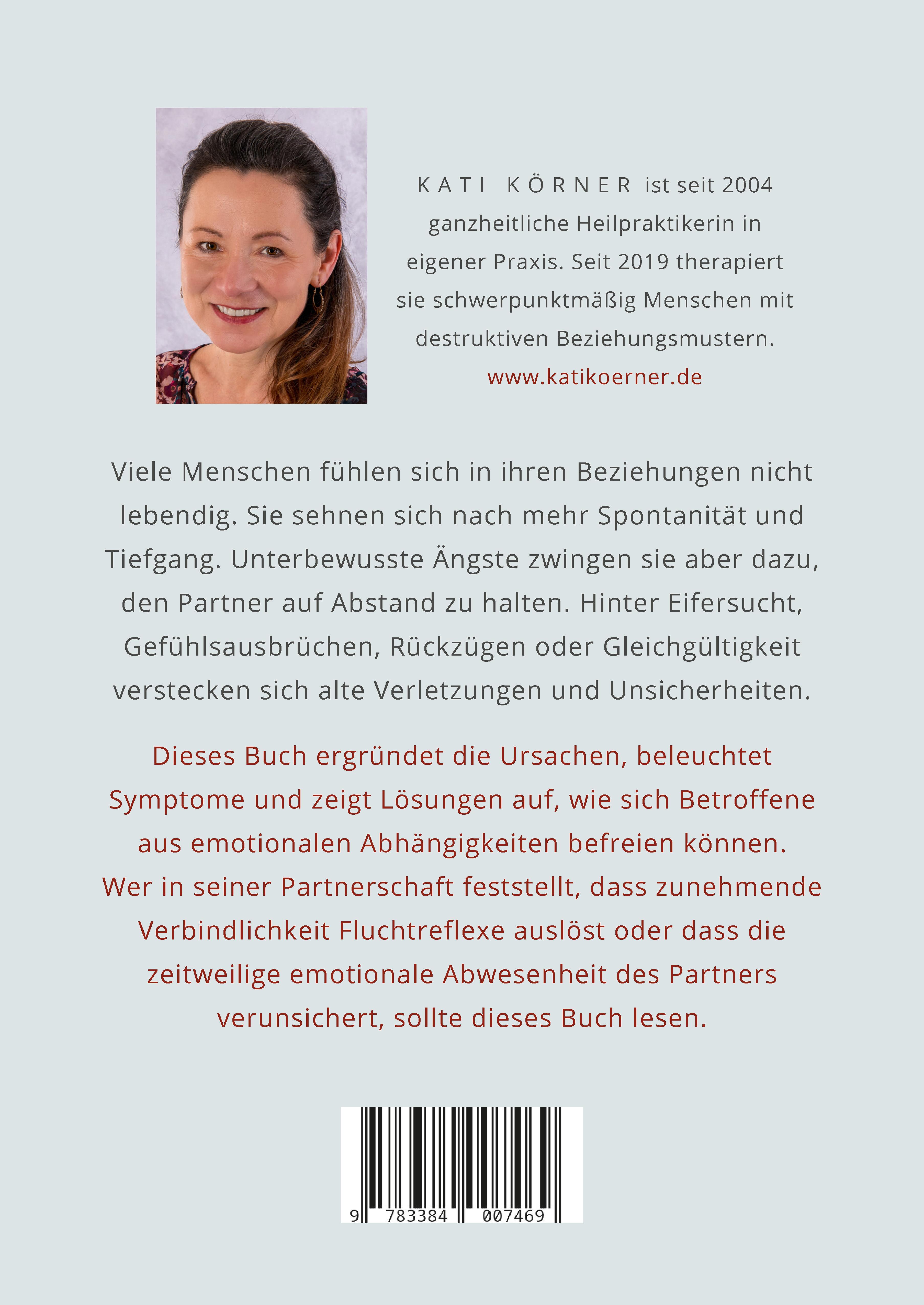 Wie du emotionale Abhängigkeiten lösen und eine glückliche Beziehung führen lernstKämpfst du bei deiner Partnerin oder deinem Partner oft mit einem Nähe-Distanz-Problem? Reagierst du auf kleinste Probleme mit heftigen Gefühlsausbrüchen, die deine Beziehung belasten? Verursacht schon eine kurze Abwesenheit Stress und Eifersucht?Die ganzheitliche Heilpraktikerin Kati Körner zeigt dir in diesem Buch die Gründe und Ursachen für ungesunde Bindungsmuster auf. Sie gibt dir wertvolle Tipps, wie du dich von alten Schutzmechanismen befreien kannst und hilft dir, verborgene Facetten deiner Persönlichkeit zu entdecken.- Wie du unsichere Bindungsstile und Beziehungsstrategien erkennst- Toxische Beziehungen: Angst vor Intimität und ihre Ursachen in der Kindheit- Bindungs- und Verlustängste überwinden: Anregungen und Erfahrungen- Der Ratgeber zur Psychologie von co-abhängigen Beziehungen und narzisstischen Verhaltensmustern- Der Blick nach vorne: Wie du deine Zukunft ohne negative Einflüsse aus der Vergangenheit gestalten kannstBindungstrauma überwinden und sich selbst verstehenWas in schwierigen Kindheitssituationen geholfen hat, kann sich im Erwachsenenleben sehr negativ auswirken. Kati Körner hat in ihrer Praxis schon vielen Menschen dabei geholfen, alte Verhaltensmuster zu erkennen und durch positive zu ersetzen. Diese Auseinandersetzung mit unsicheren Bindungsstilen und toxischem Verhalten hat sie in ihrem Buch über emotionale Abhängigkeiten zusammengefasst. Lerne, dein Selbstwertgefühl zu stärken, dich von Altem zu lösen und deine Zukunft positiv zu gestalten - nicht nur in Beziehungen, sondern auch für dich selbst!