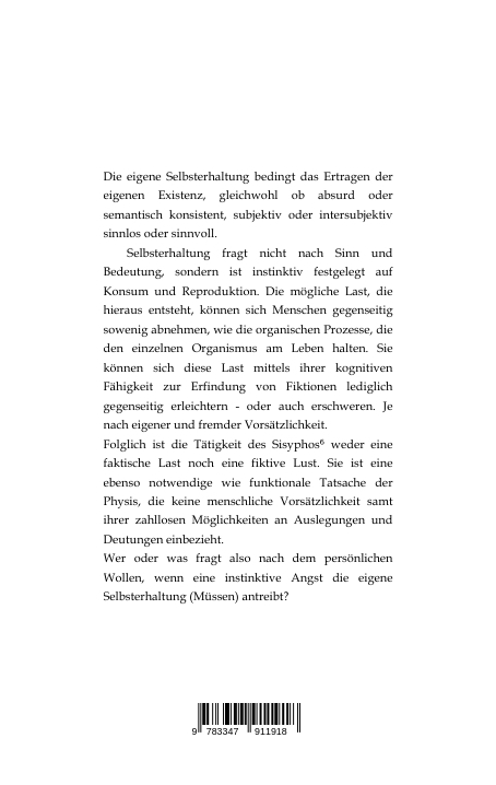 | Schlagworte | Aktionspräferenz • Anpassungsdruck • Anspruch • Bedeutung • Bindungsfähigkeit • Determinismus • Eigenverantwortung • Empathie • Enthemmung • Entscheidungsbaum • Entscheidungsfreiheit • Erwartung • Erwartungsdruck • Fakten • Fiktionen • Fiktionen Fakten Erwartung Anspruch Schwarmverhalten Gruppendynamik Stammespräferenz Aktionspräferenz Kausalität Erwartungsdruck Anpassungsdruck Wachstumsdruck Selbstverstärkung Selbstregulierung Will • Fiktionen Fakten Erwartung Anspruch Schwarmverhalten Gruppendynamik Stammespräferenz Aktionspräferenz Kausalität Erwartungsdruck Anpassungsdruck Wachstumsdruck Selbstverstärkung Selbstregulierung Willensfreiheit Entscheidungsfreiheit Eigenverantwortung Kooperation Selbstbehauptung Bindungsfähigkeit Glauben Sinn Bedeutung Kontingenz Reaktionsmus Nicht-Tun Sein-Lassen Determinismus Leere • Gewissen • Glauben • Gruppendynamik • Hemmung • Kausalität • Kontingenz • Kooperation • Leere • Nicht-Tun • Reaktionsmus • Schwarmverhalten • Sein-Lassen • Selbstbehauptung • Selbsterhaltung • Selbstoptimierung • Selbstregulierung • Selbstverstärkung • Sinn • Stammespräferenz • Unterlassen • Wachstumsdruck • Willensfreiheit |