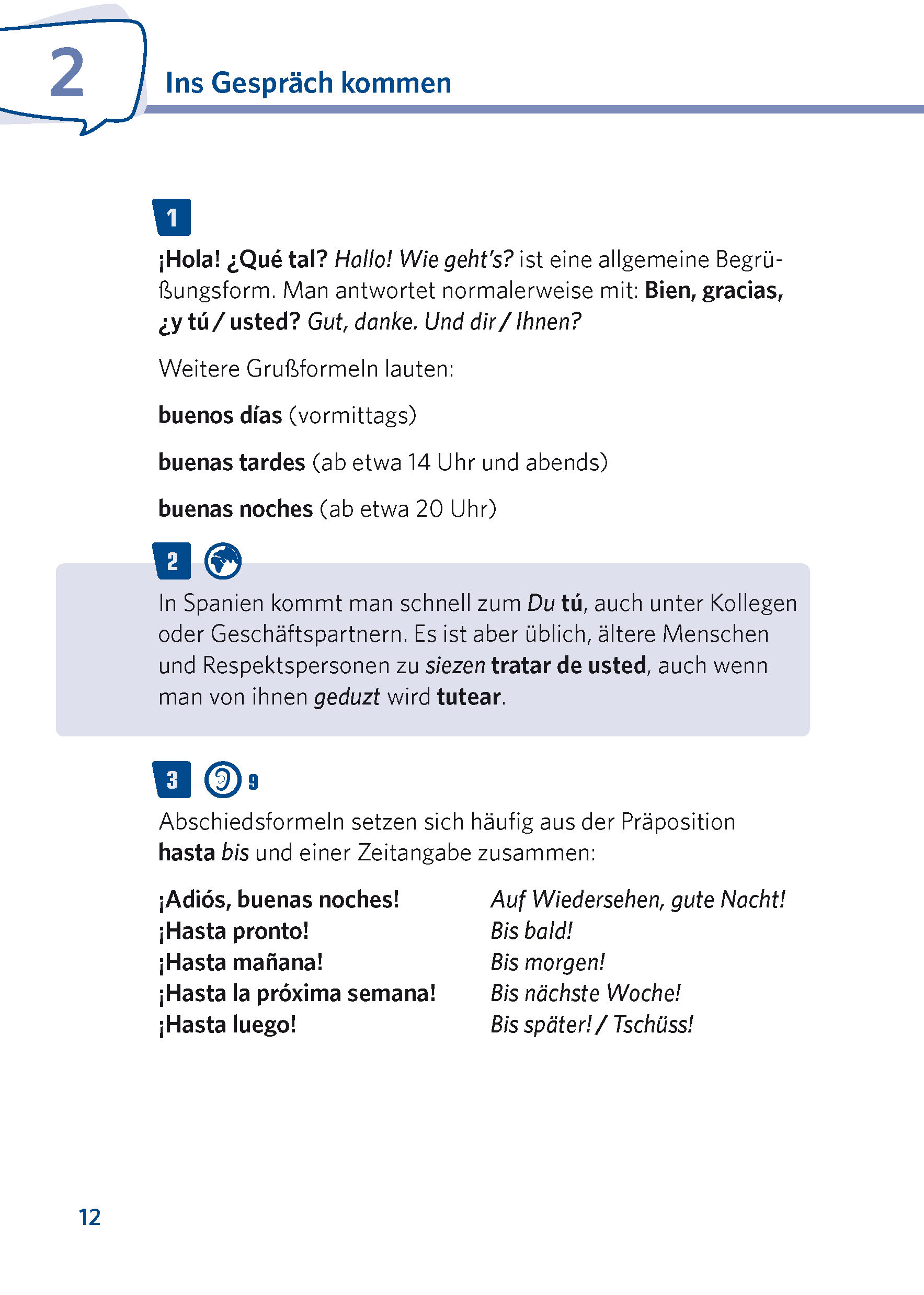 - Buch: Im Kursbuch lernen Sie Schritt für Schritt alles, was Sie für die ersten Gespräche auf Spanisch brauchen.