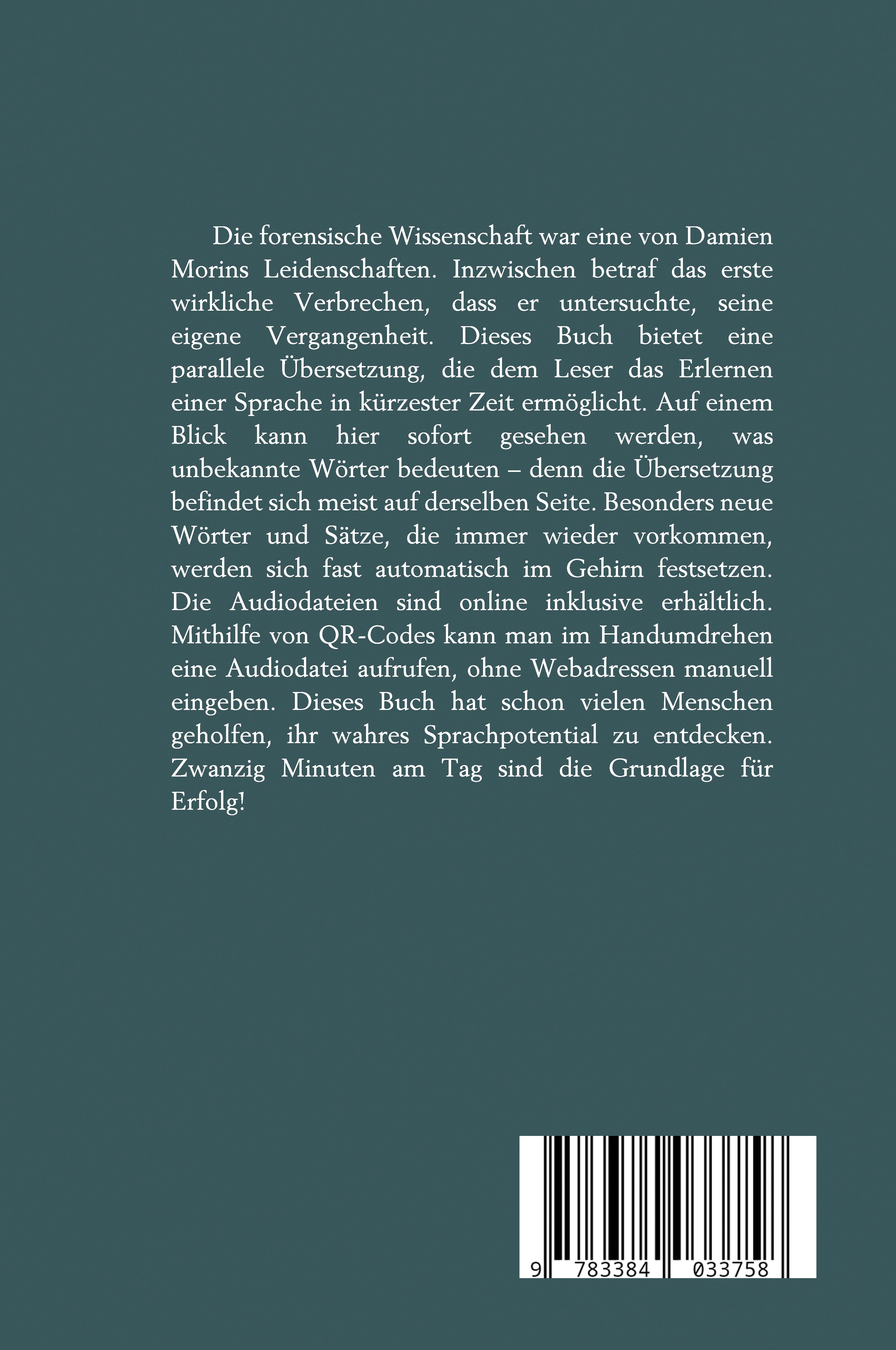 Die forensische Wissenschaft war eine von Damien Morins Leidenschaften. Inzwischen betraf das erste wirkliche Verbrechen, dass er untersuchte, seine eigene Vergangenheit. Dieses Buch bietet eine parallele Übersetzung, die dem Leser das Erlernen einer Sprache in kürzester Zeit ermöglicht. Auf einem Blick kann hier sofort gesehen werden, was unbekannte Wörter bedeuten - denn die Übersetzung befindet sich meist auf derselben Seite. Besonders neue Wörter und Sätze, die immer wieder vorkommen, werden sich fast automatisch im Gehirn festsetzen. Die Audiodateien sind online inklusive erhältlich. Mithilfe von QR-Codes kann man im Handumdrehen eine Audiodatei aufrufen, ohne Webadressen manuell eingeben. Dieses Buch hat schon vielen Menschen geholfen, ihr wahres Sprachpotential zu entdecken. Zwanzig Minuten am Tag sind die Grundlage für Erfolg!