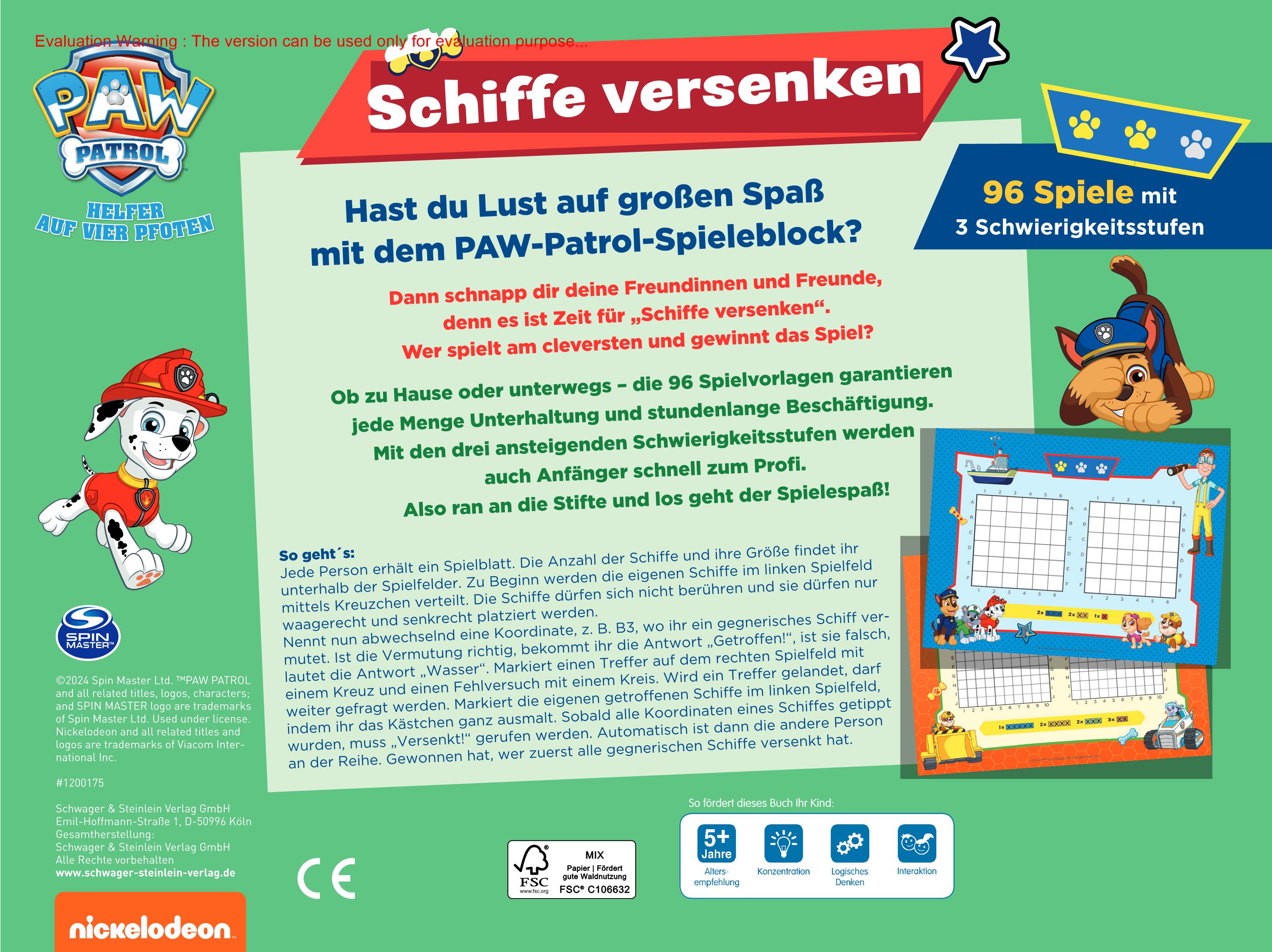 | Schlagworte | ab 5 Jahren • Beschäftigung für Autofahrt • Beschäftigung für Urlaub • Beschäftigung Kind allein • beschäftigung unterwegs • gegen Langeweile • Geschenk für Kinder • Geschenk unter 8 Euro • Kinderbuch • Kinderspiele • Paw Patrol • _PAW Patrol • Reisebeschäftigung • Reisespiel • Schwager & Steinlein Verlag • sinnvolle Beschäftigung • Spieleblock • Spielebuch • Spielen • Spiel für Zwei • Spielvorlagen |