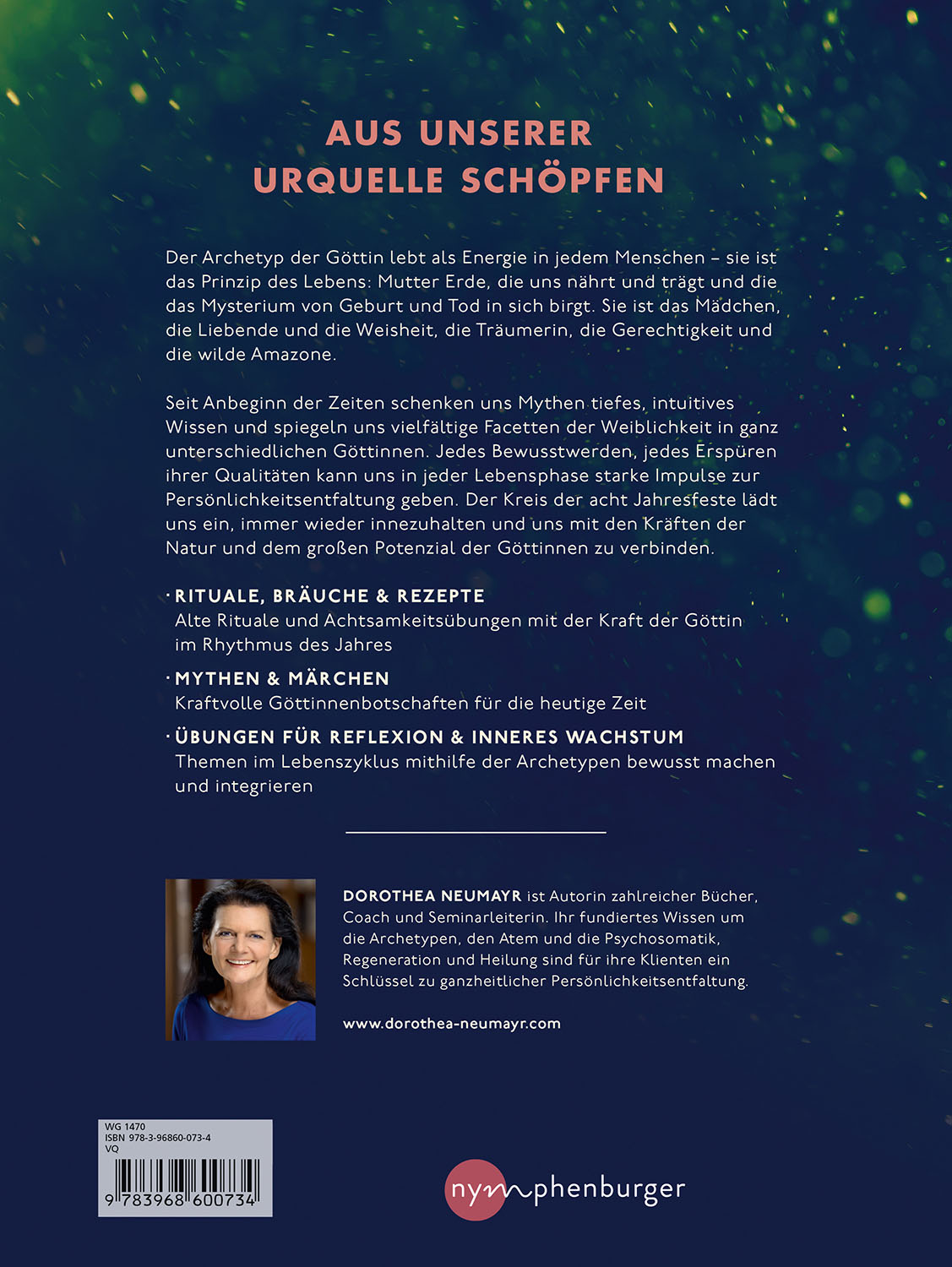 In diesem Buch stellt Dorothea Neumayr die Göttinen alter Zeiten im Wandel des Jahres vor und erzählt die Mythen und Märchen, deren archetypische Weisheit sich Frauen seit jeher zu eigen gemacht haben. Übungen, Rituale, Meditationen und Rezepte helfen dabei, das uralte Wissen um das weibliche Potenzial in den modernen Alltag zu übertragen und die Kraft der Göttinnen in jede Lebenslage zu integrieren.