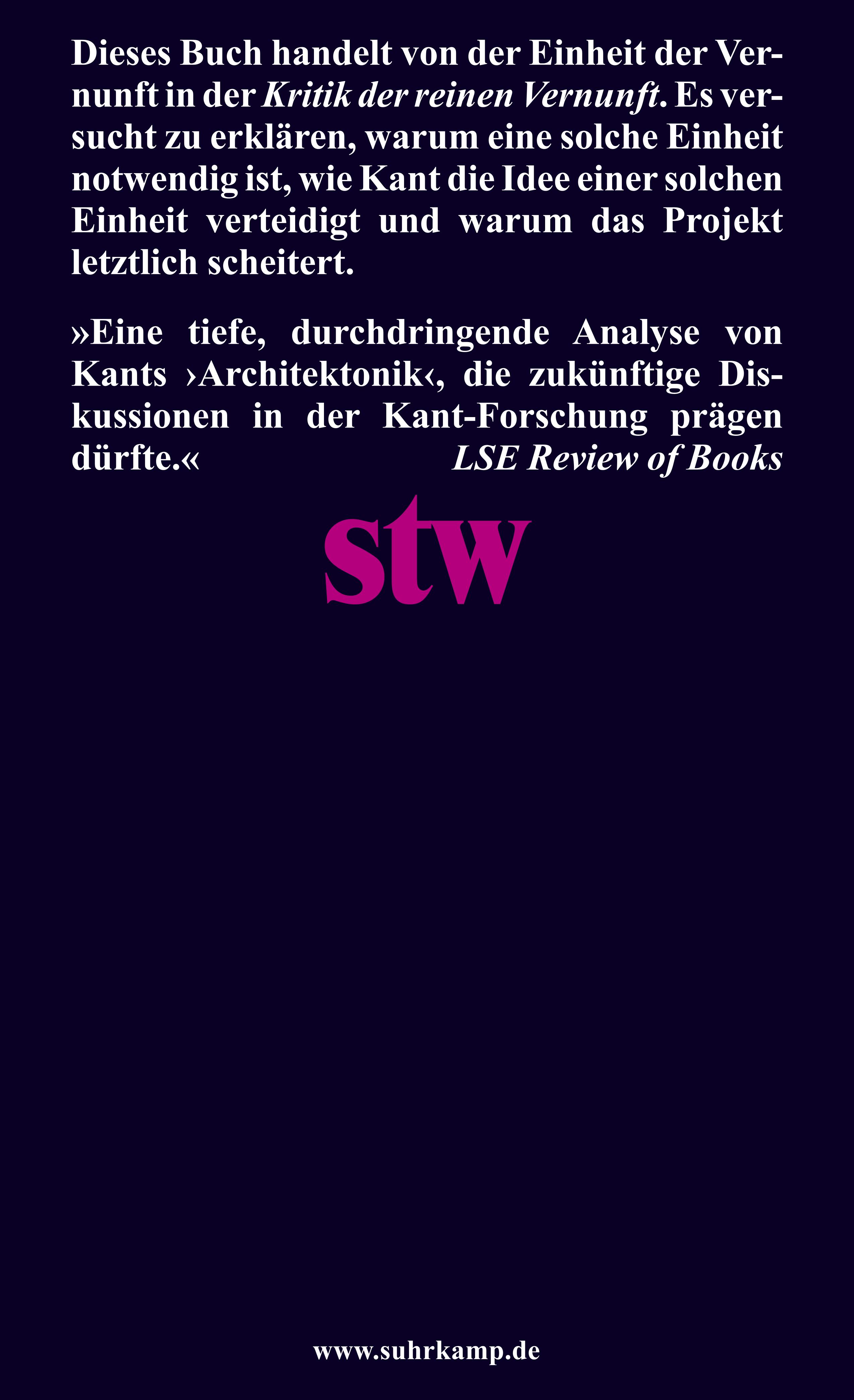 »Dieses Buch bietet eine tiefe, durchdringende Analyse von Kants Architektonik, die zukünftige Diskussionen in der Kant-Forschung prägen dürfte.«
