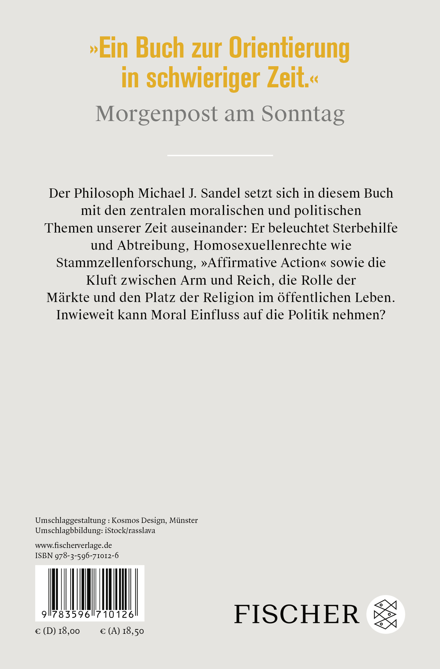 | Schlagworte | Abtreibung • Demokratie • Ethik • gesellschaftliche Streitpunkte • Harvard • Kapitalismus • LGBTIQ+ Rechte Schwule Lesben Transgender Bisexuelle Homosexualität • Neoliberalismus • staatbürgerlicher Freiheitsbegriff • Stammzellenforschung • Sterbehilfe • Wertevorstellungen |