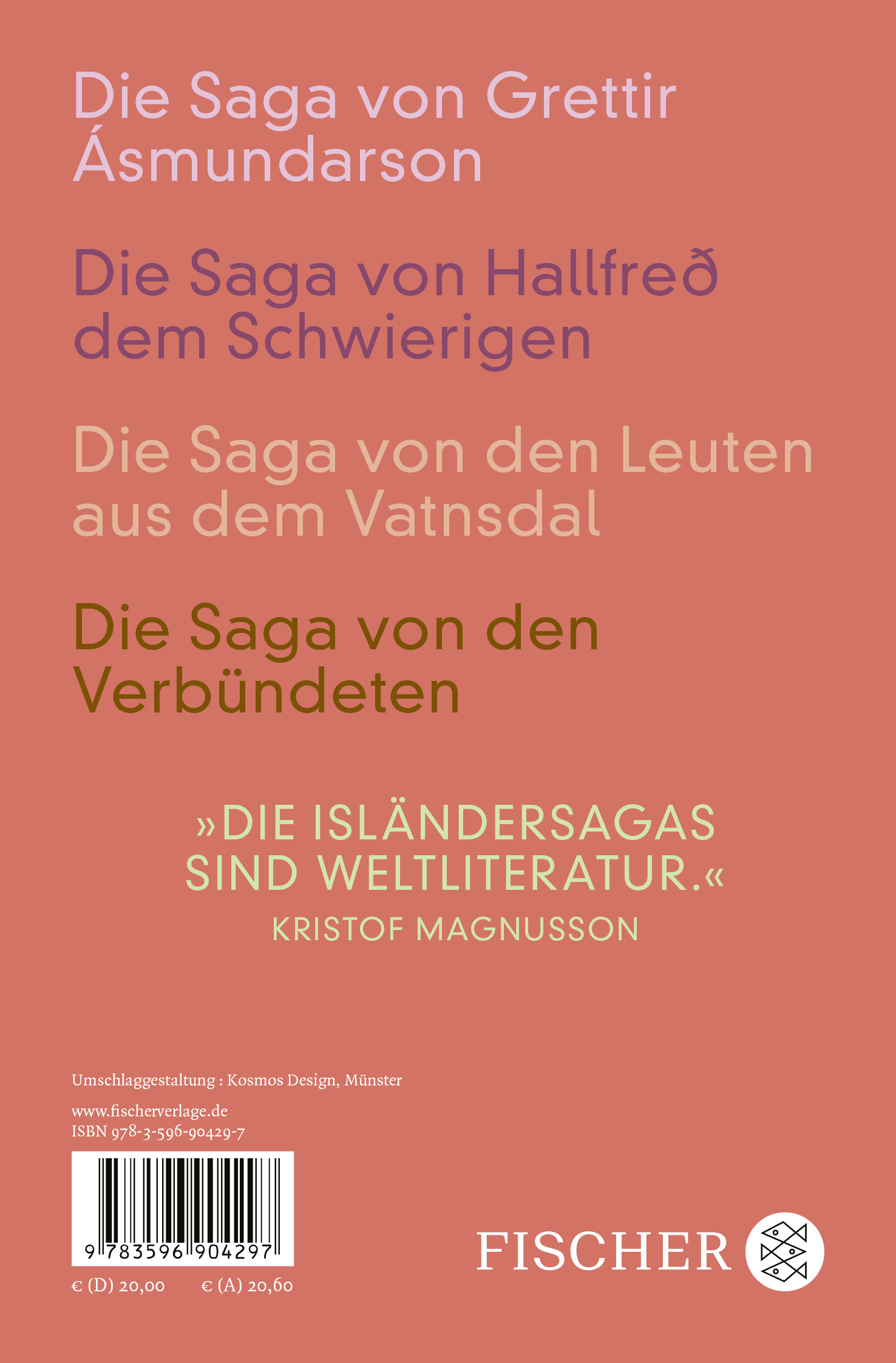 Die bekannten Sagas wie die von den Menschen im Laxárdal oder von dem großen Helden Grettir fehlen ebenso wenig wie die bekannten Sagas z. B. »Die Saga von Brennu-Njáll« sowie die Sagas von Vinland und Grönland, die von der ersten europäischen Entdeckung Amerikas berichten. Die literarisch akzentuierten Neuübersetzungen liegen in vier Bänden vor.