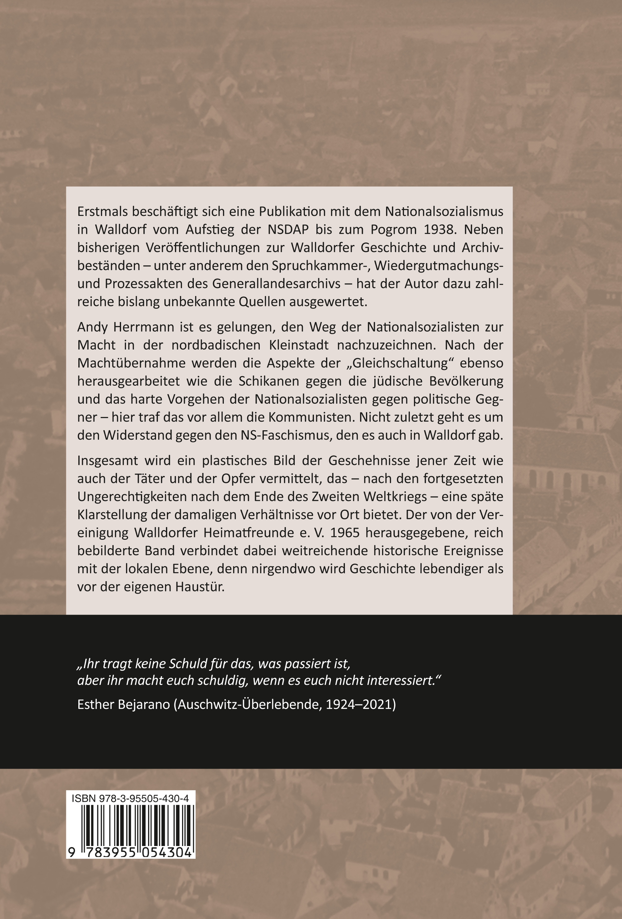 Erstmals beschäftigt sich eine Publikation mit dem Nationalsozialismus in Walldorf vom Aufstieg der NSDAP bis zum Pogrom 1938. Neben bisherigen Veröffentlichungen zur Walldorfer Geschichte und Archivbeständen - unter anderem den Spruchkammer-, Wiedergutmachungs- und Prozessakten des Generallandesarchivs - hat der Autor dazu zahlreiche bislang unbekannte Quellen ausgewertet.Andy Herrmann ist es gelungen, den Weg der Nationalsozialisten zur Macht in der nordbadischen Kleinstadt nachzuzeichnen. Nach der Machtübernahme werden die Aspekte der "Gleichschaltung" ebenso herausgearbeitet wie die Schikanen gegen die jüdische Bevölkerung und das harte Vorgehen der Nationalsozialisten gegen politische Gegner - hier traf das vor allem die Kommunisten. Nicht zuletzt geht es um den Widerstand gegen den NS-Faschismus, den es auch in Walldorf gab.Insgesamt wird ein plastisches Bild der Geschehnisse jener Zeit wie auch der Täter und der Opfer vermittelt, das - nach den fort gesetzten Ungerechtigkeiten nach dem Ende des Zweiten Weltkriegs - eine späte Klarstellung der damaligen Verhältnisse vor Ort bietet. Der von der Vereinigung Walldorfer Heimatfreunde e. V. 1965 herausgegebene, reich bebilderte Band verbindet dabei weitreichende historische Ereignisse mit der lokalen Ebene, denn nirgendwo wird Geschichte lebendiger als vor der eigenen Haustür.