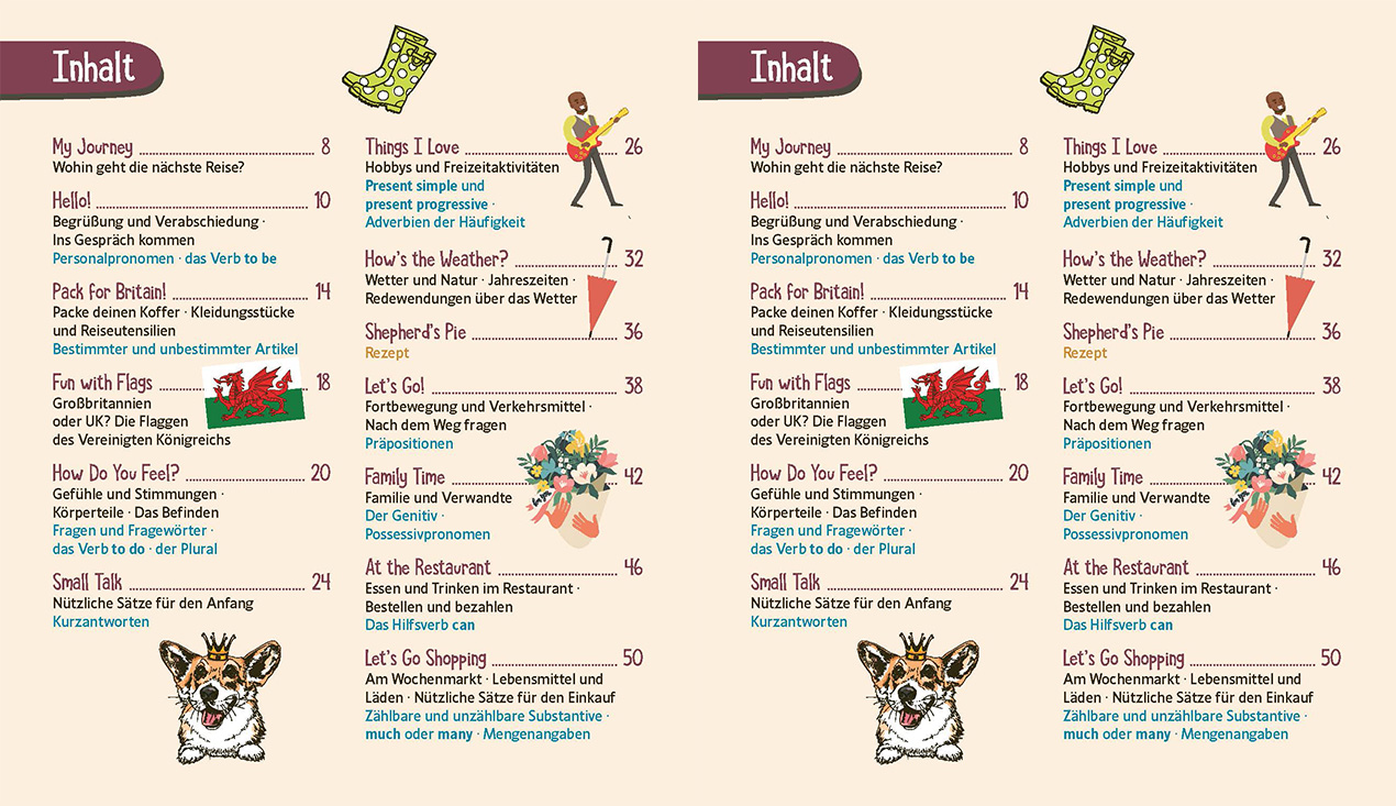 Unterhaltsame Inhalte wie beispielsweise das Rezept für die allseits beliebten Scones, verschiedene Redewendungen über das Wetter oder eine kunterbunte Karte des Vereinigten Königreichs, die dazu einlädt, das nächste Reiseziel auszusuchen - der Spaß beim Englisch lernen steht hier im Vordergrund! Der aktuelle Trend von "Feel good" und "hygge" wird somit in den Sprachenbereich aufgenommen. Ergänzt durch Rätsel und zahlreiche Übungen, aber ohne Fokus auf lästige Grammatikregeln - ganz "easy as pie". So wird eine Verbindung hergestellt zwischen Wohlfühlmomenten und Sprachenlernen!