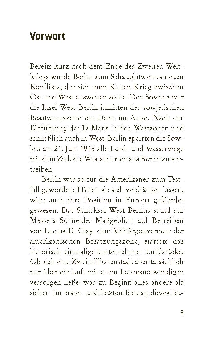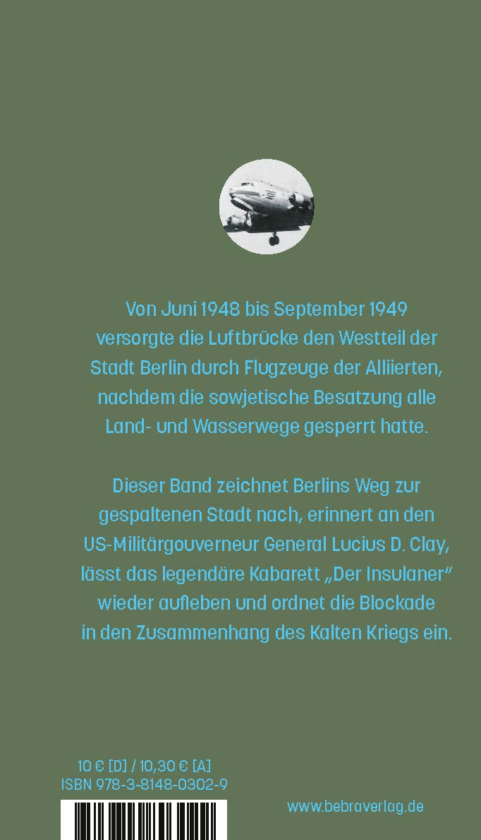 Von Juni 1948 bis September 1949 versorgte die Luftbrücke den Westteil der Stadt Berlin durch Flugzeuge der Alliierten, nachdem die sowjetische Besatzung alle Land- und Wasserwege gesperrt hatte. Dieser Band zeichnet Berlins Weg zur gespaltenen Stadt nach, erinnert an den US-Militärgouverneur General Lucius D. Clay, lässt das legendäre Kabarett "Der Insulaner" wieder aufleben und ordnet die Blockade in den Zusammenhang des Kalten Kriegs ein.