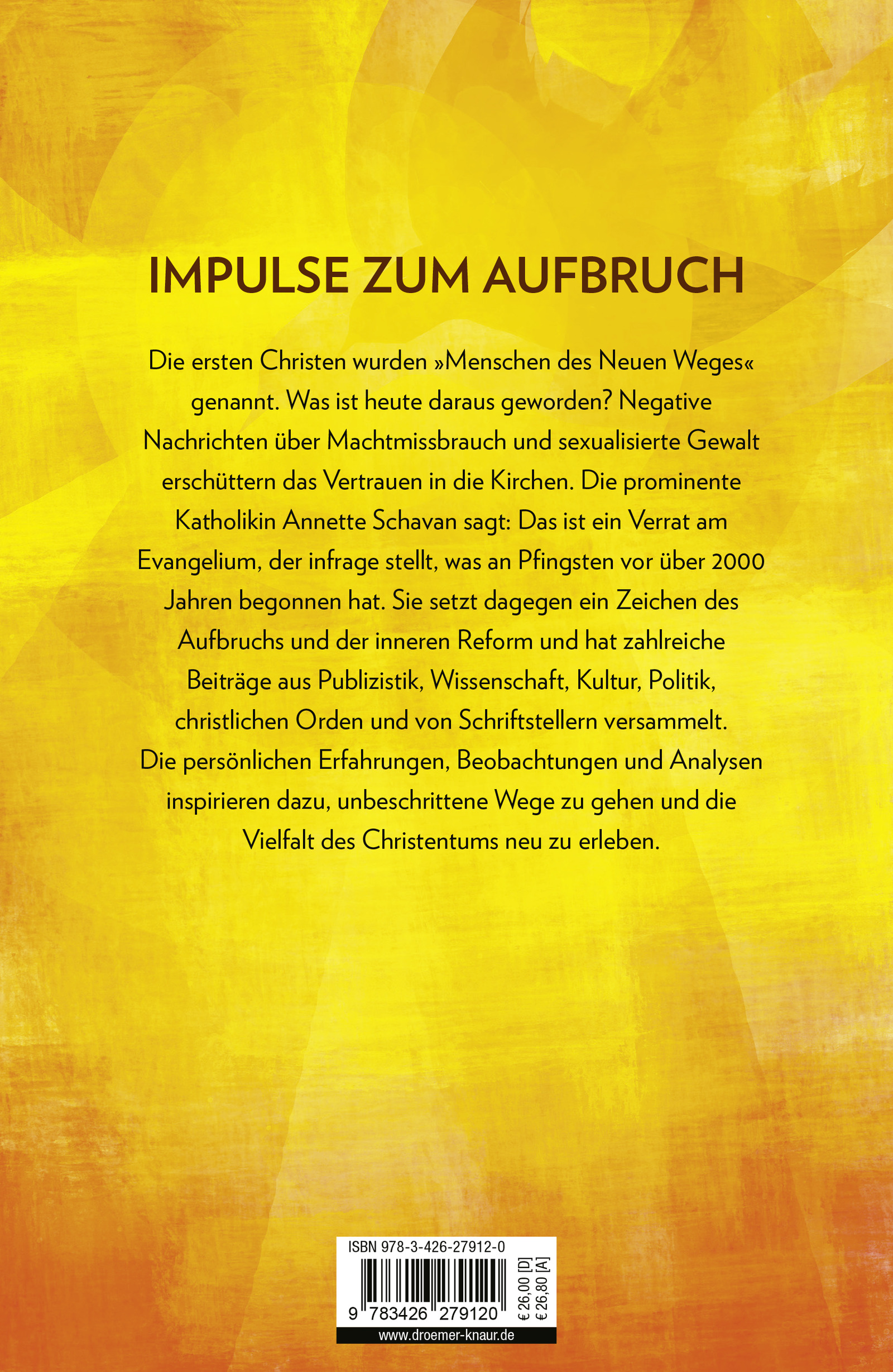 Gegen diese Tendenzen setzt die prominente Katholikin Annette Schavan ein Zeichen des Aufbruchs und der inneren Reform. Sie hat zahlreiche Beiträge von Kirchen- und Ordensangehörigen, Publizisten, Schriftstellern und Wissenschaftlern gesammelt, die zu einem Neuanfang aufrufen. Aus unterschiedlichen Perspektiven beschreiben und erklären sie, was notwendig ist, damit die christliche Kirche eine Zukunft hat.