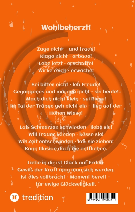 Nach Höhen, Tiefen und Brüchen bin ich in diesem Leben angekommen - "Sie haben ein Lücke in Ihrem Lebenslauf.", "Ja, war mein erfüllendstes Sein hier." Als Dichter und Denker eines sich immer schneller wandelnden Seins binde und schmelze ich Ideen aus Zeiten und Welten. Dabei gelingt es weitender, die zeitlose Essenz unserer Existenz immer geschickter zu kristallisieren. Diese Erspührungen, Wahrnehmungen und Erkenntnisse finden sich in meinen Ideen und Schriften spiegelflutend oder Ruhe durchwühlend wieder. Unsere grundhafte Sprache und die ihr innewohnenden Bilder und Energien dienen mir hilfreich in meinem Wirken.