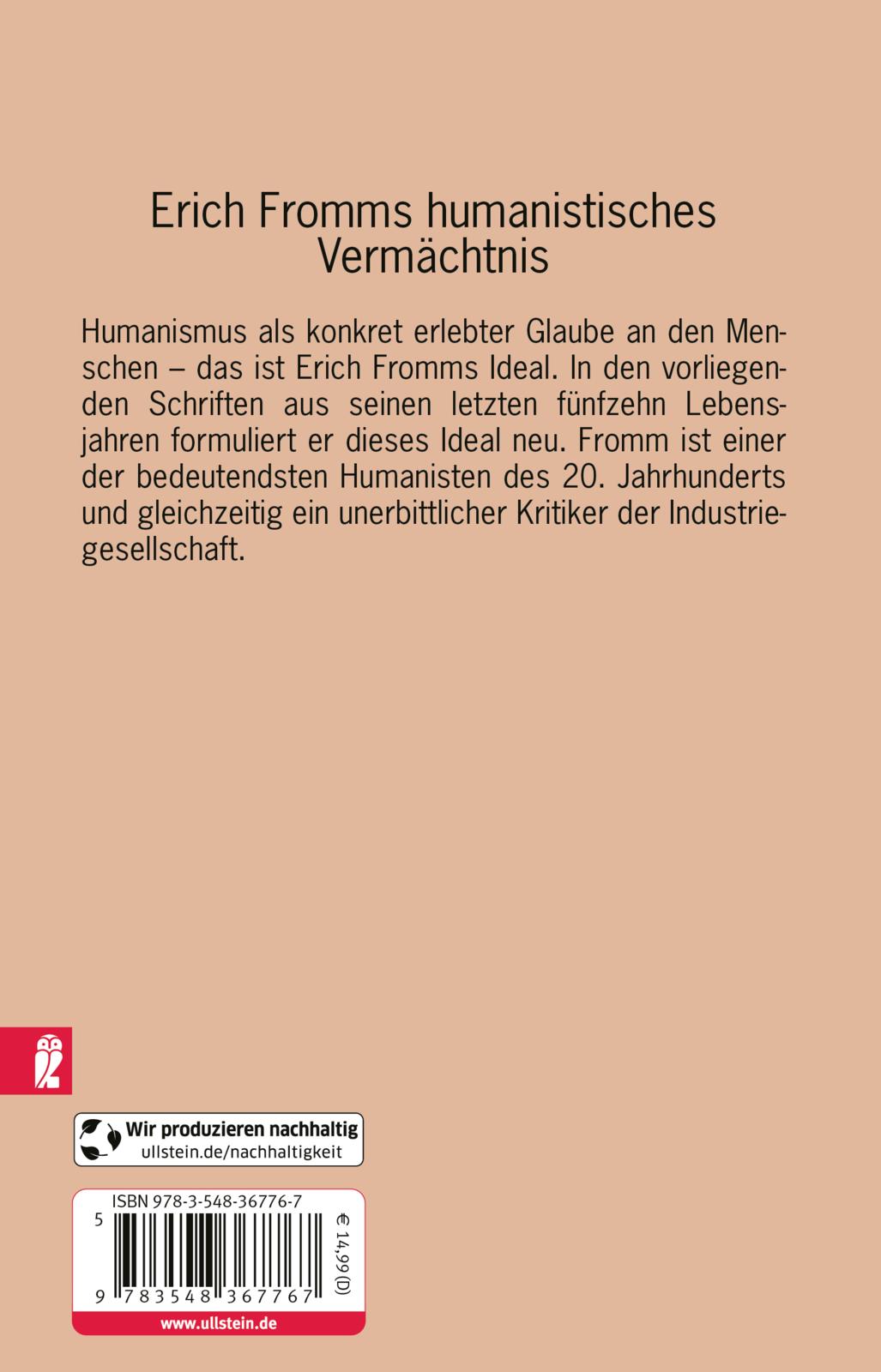In den vorliegenden Schriften aus seinen letzten 15 Lebensjahren formuliert er dieses Ideal neu. Fromm ist einer der bedeutendsten Humanisten des 20. Jahrhunderts und gleichzeitig ein unerbittlicher Kritiker der Industriegesellschaft.