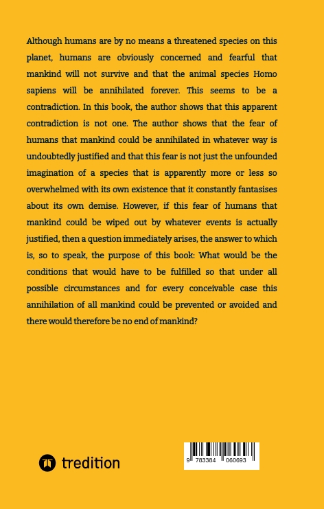 | Schlagworte | Das mögliche Ende der Menschheit • Das Schicksal der Menschheit • Das Schicksal der Tierart Homo sapiens • das Überleben der Menschheit • Das Überleben der Tierart Homo Sapiens |