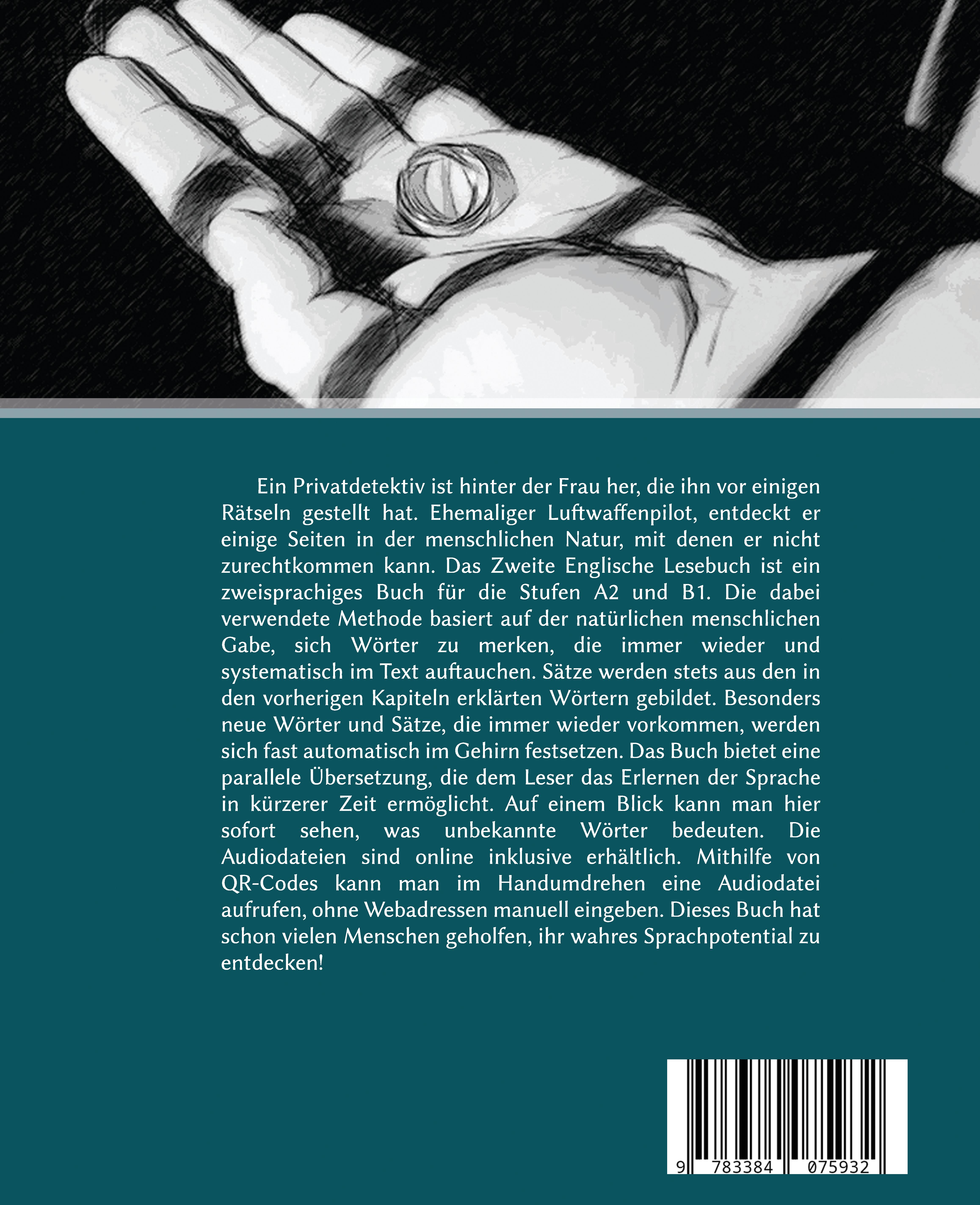 Ein Privatdetektiv ist hinter der Frau her, die ihn vor einigen Rätseln gestellt hat. Ehemaliger Luftwaffenpilot, entdeckt er einige Seiten in der menschlichen Natur, mit denen er nicht zurechtkommen kann. Das Zweite Englische Lesebuch stellt eine wunderbare sarkastische Krimi-Groteske dar. Dieses zweisprachige Buch ist für die Stufen A2 und B1 am besten geeignet. Die dabei verwendete Methode basiert auf der natürlichen menschlichen Gabe, sich Wörter zu merken, die immer wieder und systematisch im Text auftauchen. Sätze werden stets aus den in den vorherigen Kapiteln erklärten Wörtern gebildet. Besonders neue Wörter und Sätze, die immer wieder vorkommen, werden sich fast automatisch im Gehirn festsetzen. Das Buch bietet eine parallele Übersetzung, die dem Leser das Erlernen der Sprache in kürzerer Zeit ermöglicht. Auf einem Blick kann hier sofort gesehen werden, was unbekannte Wörter bedeuten. Die Audiodateien sind online inklusive erhältlich. Mithilfe von QR-Codes kann man im Handumdrehen eine Audiodatei aufrufen, ohne Webadressen manuell eingeben. Dieses Buch hat schon vielen Menschen geholfen, ihr wahres Sprachpotential zu entdecken.