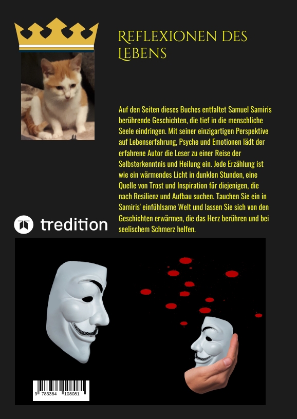 Samuel Samiris Schreibt vorsichtshalber unter einem Pseudonym. Sein Traumata verarbeitet er in all seinen Büchern, die alle nach und nach veröffentlicht werden. Andere sich darin spiegeln können und lernen mit einem ähnlichen Schicksal umzugehen. Seine Erlebnisse sind hart und haben ein Lebenslang an ihn gezerrt. Doch mit Hilfe der Psyche und der Selbstreflexion kann er heute über so vieles schreiben. Dies schreiben über das erlebte hilft Samuel Samiris alles aufzuarbeiten. So ist er heute ein sehr starker Mensch der vor nichts mehr Angst hat.