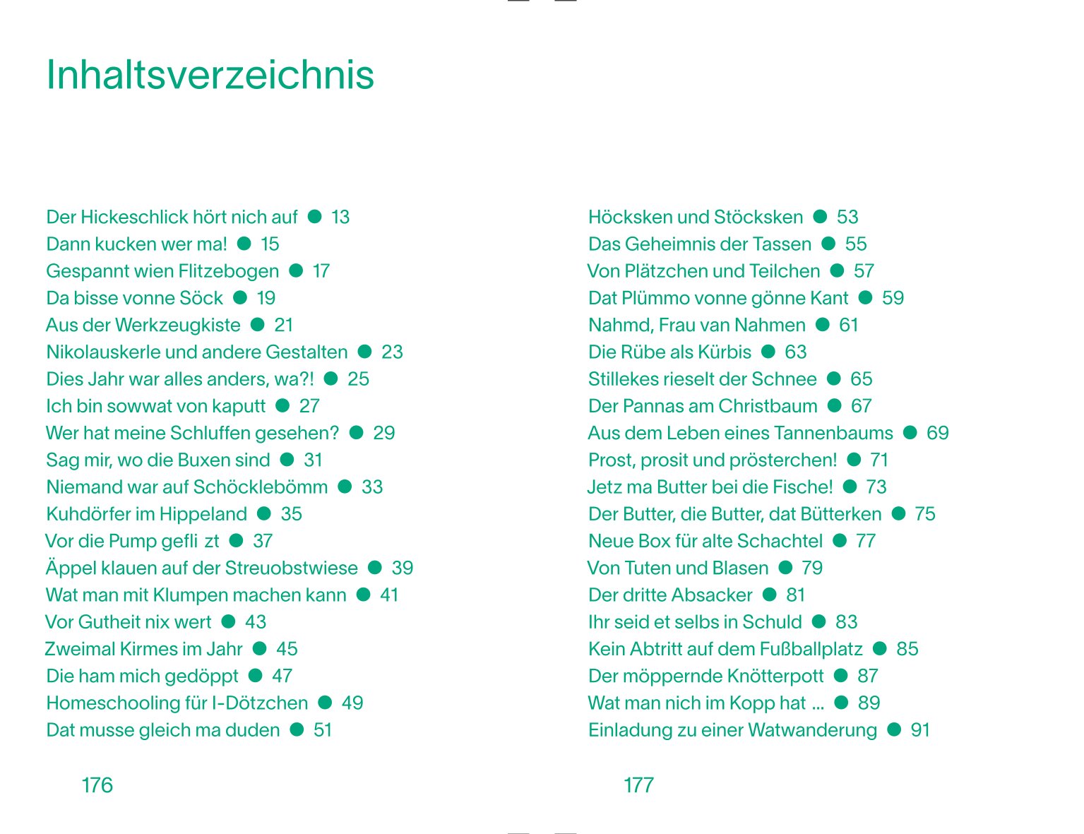 | Schlagworte | Alltagssprache • bücher umgangssprache • Cornelissen • Deutsche Dialekte • deutsche dialekte buch • Deutsche Sprachwissenschaft • Dialekt • Dialekte • dialekte deutschland • dialekt niederrhein • dialekt nordrhein westfalen • dialekt ruhrgebiet • Dialekt Wörterbuch • düsseldorf dialekt • düsseldorf mundart • düsseldorf platt übersetzer • etymologie buch • etymologisches lexikon • greven verlag köln • Herkunftswörterbuch • mönchengladbach dialekt • Mundarten • Niederfränkisch • Niederrhein • niederrhein dialekt • Niederrheinisch • niederrhein wörterbuch • nix • Nordrhein Westfalen • nordrhein westfalen dialekt • nrw dialekt • nrw dialekt wörter • nrw mundart • NRZ Kolumne • nüt für unguet • Pimpernelle • pimpernellen • plattdeutsch sätze • plattdeutsch übersetzer • Pusemuckel • redewendungen niederrhein • Regiolekt • Regiolekte • regionale Dialekte • Regionalgeschichte • Rheinisch • rheinische dialekte • rheinische landeskunde lvr • Rheinische Mundart • rheinische mundart wörterbuch • rheinischer dialekt wörterbuch • rheinisches platt • rheinisches platt wörterbuch • rheinische sprache • Rheinisches Wörterbuch • rheinische wörter • Rheinland • rheinland buch • rheinländer dialekt • Rheinländisch • rheinländisch dialekt • rheinland kultur • rotwelsch wörter • Ruhrdeutsch • Ruhrdialekt • Ruhrgebietssprache • ruhrgebiet wörterbuch • Ruhrpott Dialekt • ruhrpott sprache • Sprache • sprache im rheinland • sprache ruhrpott • sprachvarianten des deutschen • sprachvarianten deutsch • Sprachwissenschaft • sprachwissenschaft buch • typisch niederrhein • Umgangssprache • umgangssprache lexikon • umgangssprache wörterbuch • Varietäten • vor die pump geflitzt • Wörterbuch • Wörterbücher • wörterbuch plattdeutsch rheinland |