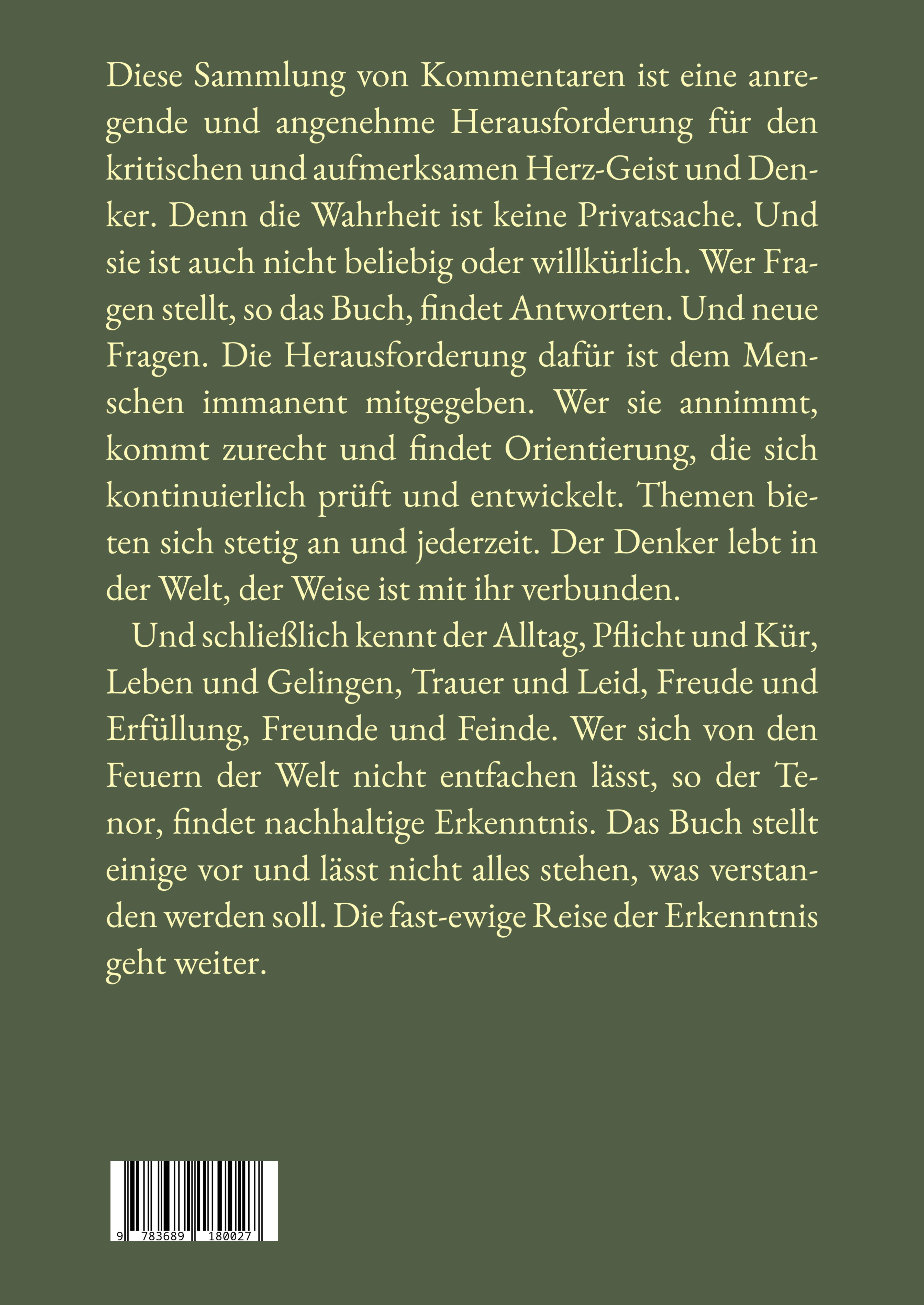 | Schlagworte | Angst • Blick • eigene • Ende • finden • Fragen • Freude • Gedanken • Geschichte • Glück • Jahre • Jahren • Lernen • Leute • Licht • Liebe • Mann • Mensch • Menschen • Natur • Problem • Recht • Sagen • scheint • Seite • Tod • Tut • Welt • Wissen • Zeit |