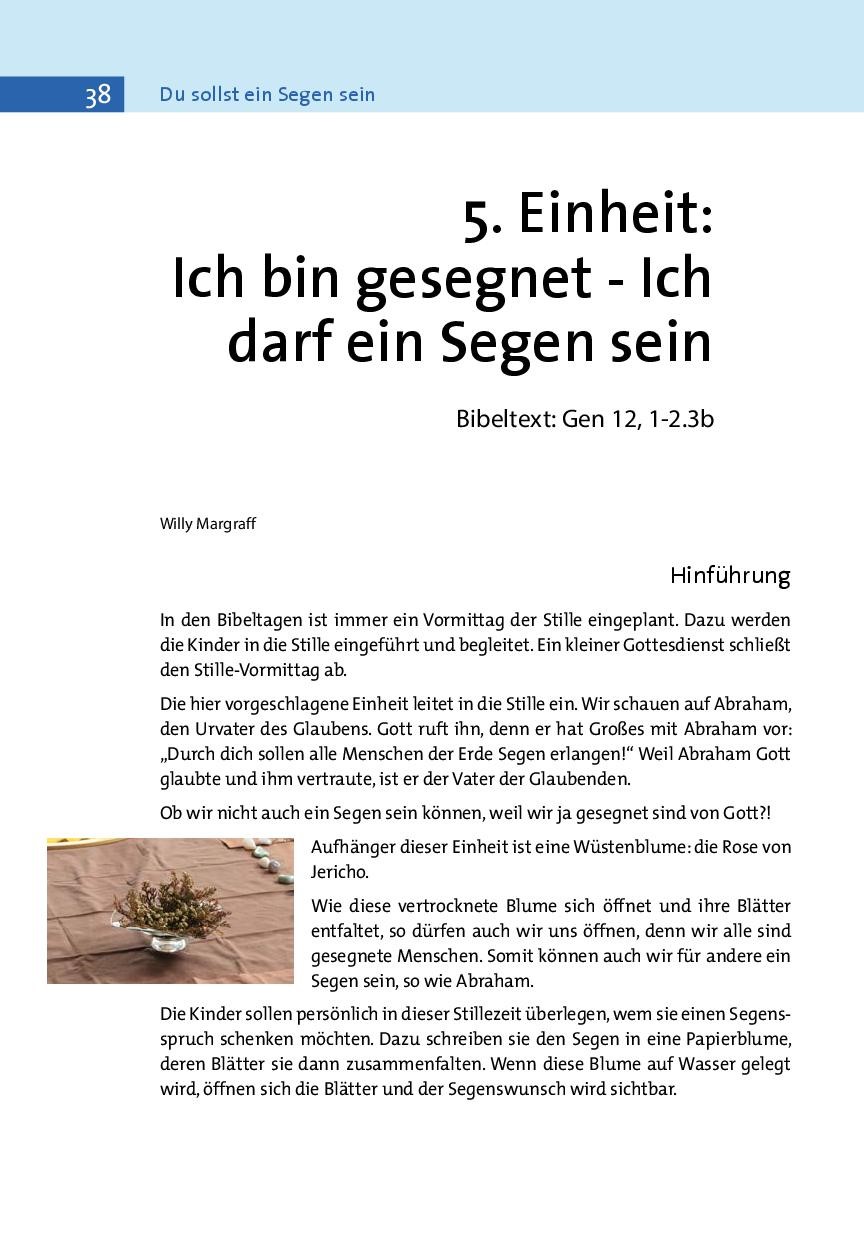 Mit der Glocke des Glücks ist eine Geschichte für den Frühling bearbeitet. Bibeltage zum Thema Segen (Du bist wertvoll; Kreuzzeichen; Aaron-Segen; Gott segne unser Haus; Ich bin gesegnet) nehmen den Hauptteil des Heftes ein. Ein Kreuzweg für Jugendliche und Erwachsene beschließt das Heft.