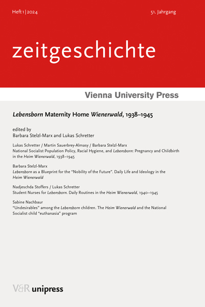 Established in Pernitz/Feichtenbach in 1938, the Heim Wienerwald served the SS association Lebensborn as a maternity home to increase the birth rate of “Aryan” children. This volume brings together recent research on the history of the Heim Wienerwald based upon unique sources: the articles focus on the maternity home in the wider context of National Socialist racial policy, presenting findings on the regulations for keeping births within Lebensborn secret, the requirements for admission to Lebensborn, and the assessment of mother and child. Secondly, the volume examines everyday life in this facility and the extent to which the stay of pregnant women and mothers was regulated in the context of National Socialist ideology. Thirdly, it provides an insight into the experiences and everyday life of the staff , especially the student nurses. Fourthly, the volume deals with the children born in the Heim Wienerwald who did not meet the “selection criteria” of the SS and were murdered as part of the National Socialist child “euthanasia” programme.