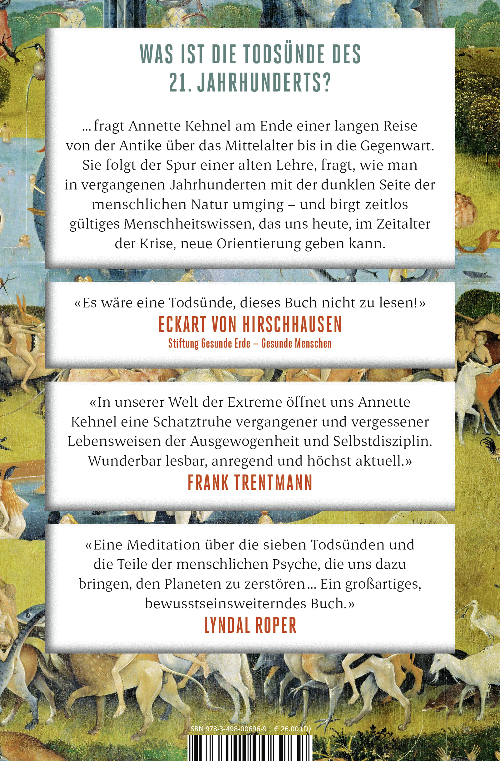 | Schlagworte | Antike • Ausschweifung • Bibel • Buße • Demut • Ethik • Gemeinschaft • Gemeinsinn • Habgier • Hochmut • Individualismus • Kirche • Kirchenväter • Klimawandel • lifestyle • Luxus • Mäßigung • Menschheitsgeschichte • Menschheitswissen • Mittelalter • Moralphilosophie • Nachhaltigkeit • Natürliche Ressourcen • Neid • Ressourcenknappheit • Sieben Todsünden • Trägheit • Tugenden • Tugendlehre • Umwelt • Verzicht • Völlerei • Weisheit • Wollust • Zorn |