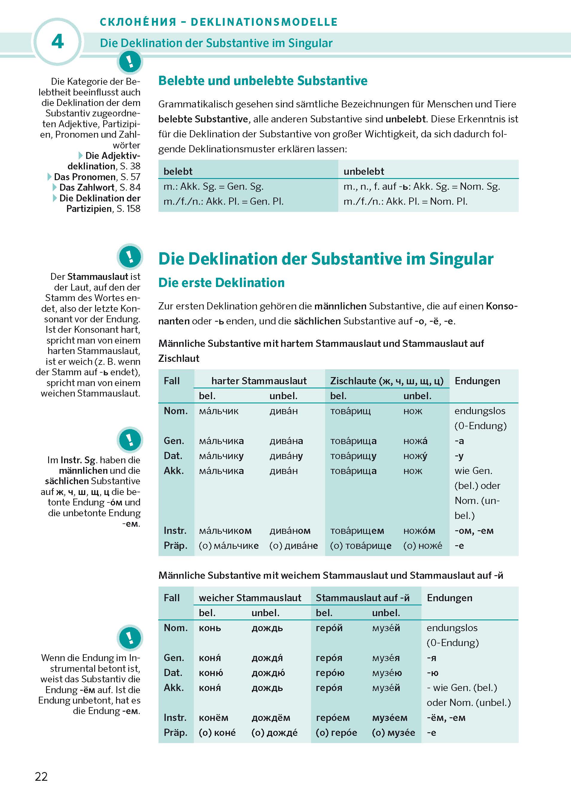 - Schlagen Sie schnell und zuverlässig alle Grammatikthemen in Russisch nach