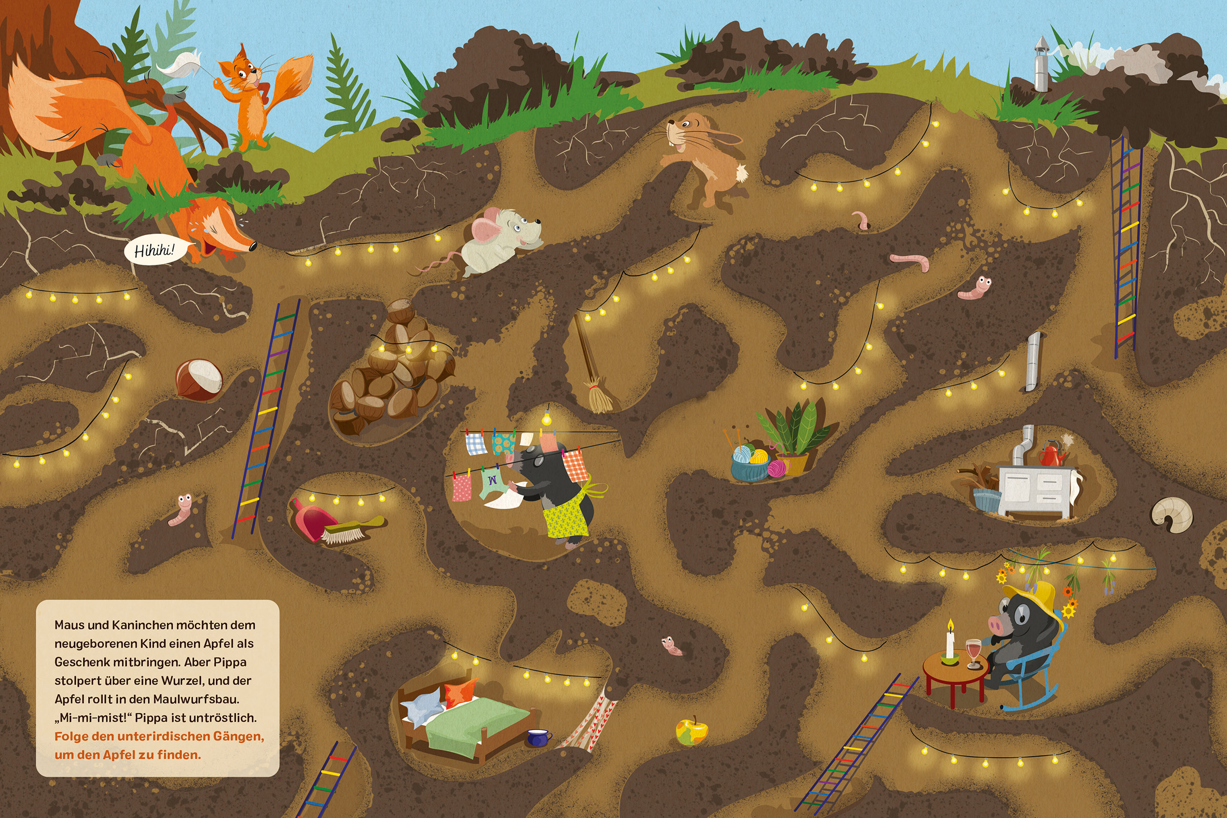 Das Kaninchen Kasimir und die kleine Maus Pippa sind in großer Aufregung: Maria und Josef sind nach Betlehem aufgebrochen und haben versehentlich Kaninchens Kuscheldecke mitgenommen. Also nichts wie hinterher! In diesem Bilderbuchabenteuer begleiten die kleinen Leser die Tiere auf ihrer abenteuerlichen Reise, folgen den Fußspuren und helfen, auf dem Weg nach Betlehem knifflige Rätsel zu lösen. Auch ein hartnäckiger Verfolger muss abgehängt und ausgetrickst werden ...