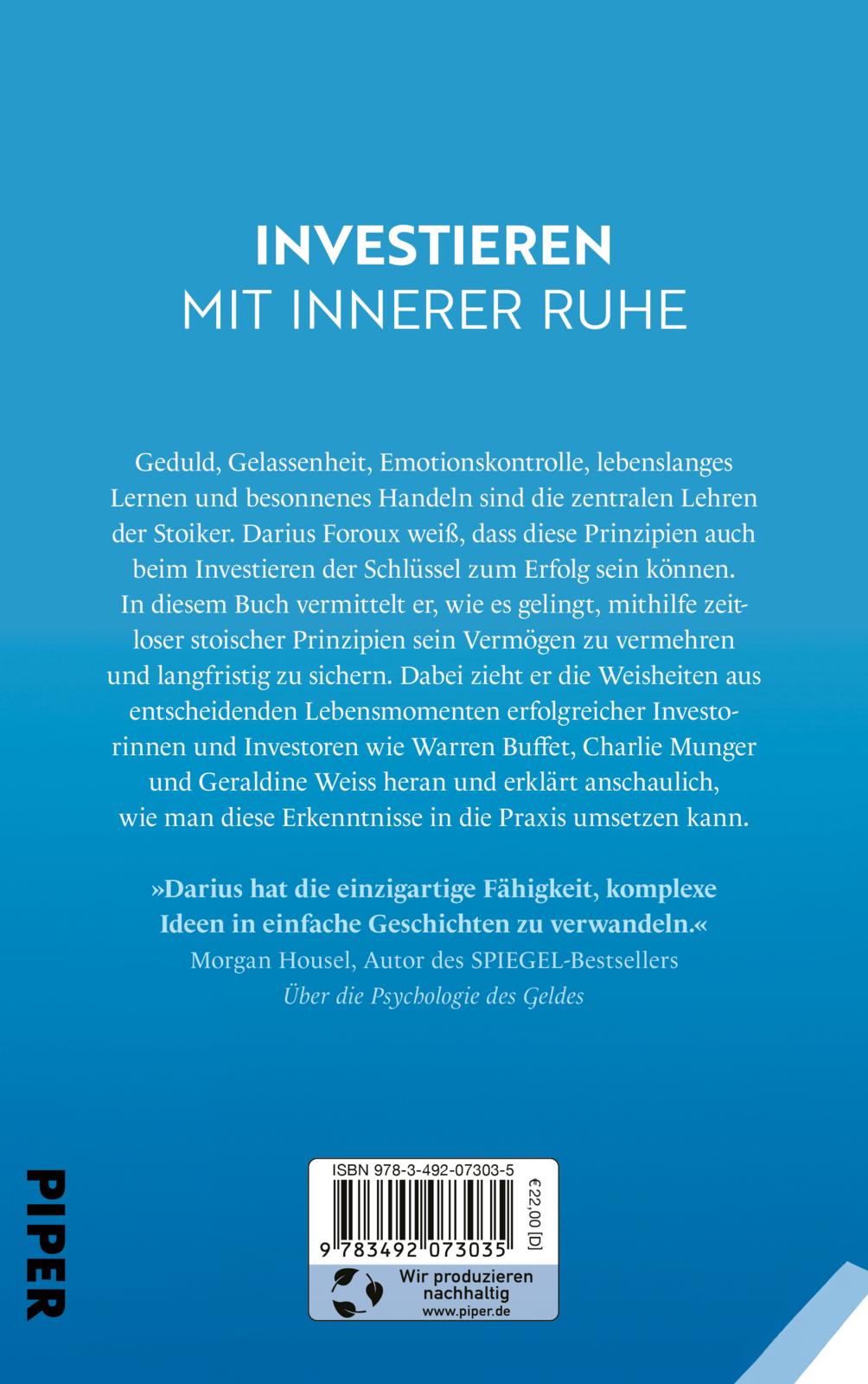 Lebenslanges Lernen, Geduld, Gelassenheit, Emotionskontrolle und besonnenes Handeln sind die zentralen Lehren der Stoiker. Diese Prinzipien haben nicht nur das tägliche Leben von Epiktet, Seneca und Marc Aurel geprägt, sondern können auch beim Investieren der Schlüssel zum Erfolg sein. Dieses Buch vermittelt, wie man mithilfe zeitloser stoischer Prinzipien sein Vermögen vermehren und langfristig sichern kann. Dabei werden die Weisheiten aus entscheidenden Lebensmomenten erfolgreicher Investorinnen und Investoren wie Warren Buffet, Charlie Munger und Geraldine Weiss herangezogen, in den Kontext der stoischen Philosophie gestellt und anschaulich erklärt, wie man diese Erkenntnisse in die Praxis umsetzen kann.