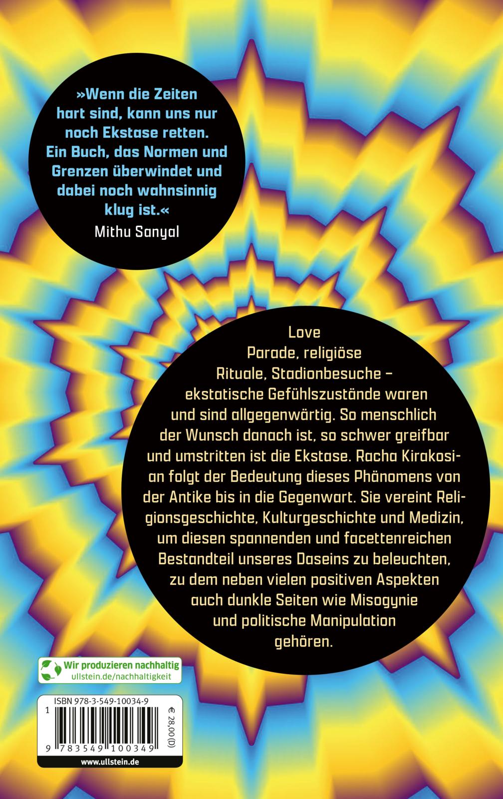 Racha Kirakosian nähert sich der Ekstase aus verschiedenen Richtungen: der des Individuums, etwa anhand der Schmerzerfahrung, aber auch der des Kollektivs, etwa beim Thema Massenwahn. Gekonnt vereint sie Religionsgeschichte, Kulturgeschichte und Medizin, um eine spannende, facettenreiche Seite unseres Daseins zu beleuchten, zu der auch dunkle Aspekte wie Misogynie, Hexenjagd und politische Manipulation gehören.