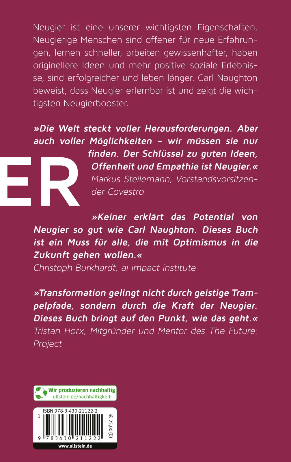 Neugier ist eine unserer wichtigsten Eigenschaften. Neugierige Menschen sind offener für neue Erfahrungen, lernen schneller, arbeiten gewissenhafter, haben originellere Ideen und mehr positive soziale Erlebnisse, sie sind erfolgreicher und leben länger. Neugier wurde bereits 2016 vom World Economic Forum an die Spitze der Liste der Charaktereigenschaften des einundzwanzigsten Jahrhunderts gewählt und aktuell wird an den ersten neugierigen KIs gearbeitet. Sie Neugier taucht aber nicht von selbst im Büro oder Home-Office auf. Sie braucht benötigt einen inneren Antrieb sowie ein . Und sie braucht ein stärkendes Umfeld. Carl Naughton beweist, dass Neugier erlernbar ist, erklärt die Neugierbooster und zeigt, wie man den kontraproduktiven Wunsch, Unsicherheit möglichst schnell loszuwerden, aushebeln kann. Das erste populäre Buch zu einer entscheidenden menschlichen Eigenschaft.