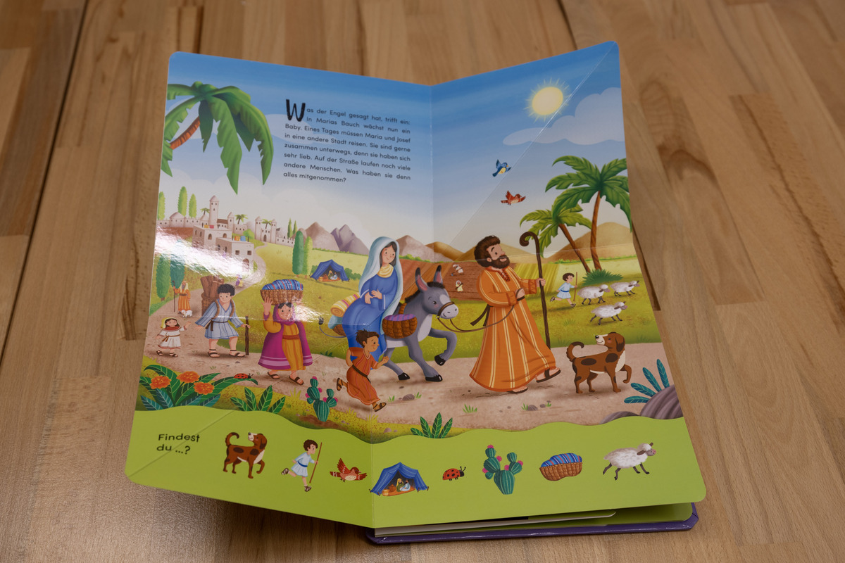 Mit seinem handlichen Format ist dieses Buch genau richtig für Kinderhände. Spielend leicht lassen sich die großformatigen Bilder aufklappen und sorgen für freudiges Staunen im Kinderzimmer. Bäuchlings auf dem Teppich liegend erkunden die Kleinen, was es mit Maria und Josef, den Hirten, den Weisen und der Krippe im Stall auf sich hat. Für eine Advents- und Weihnachtszeit, in der die Geburt Jesu im Mittelpunkt steht!
