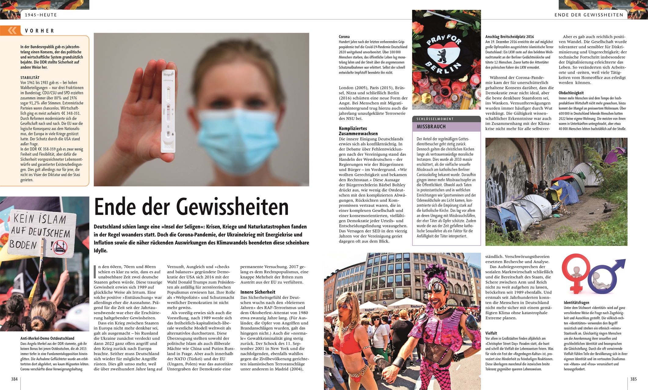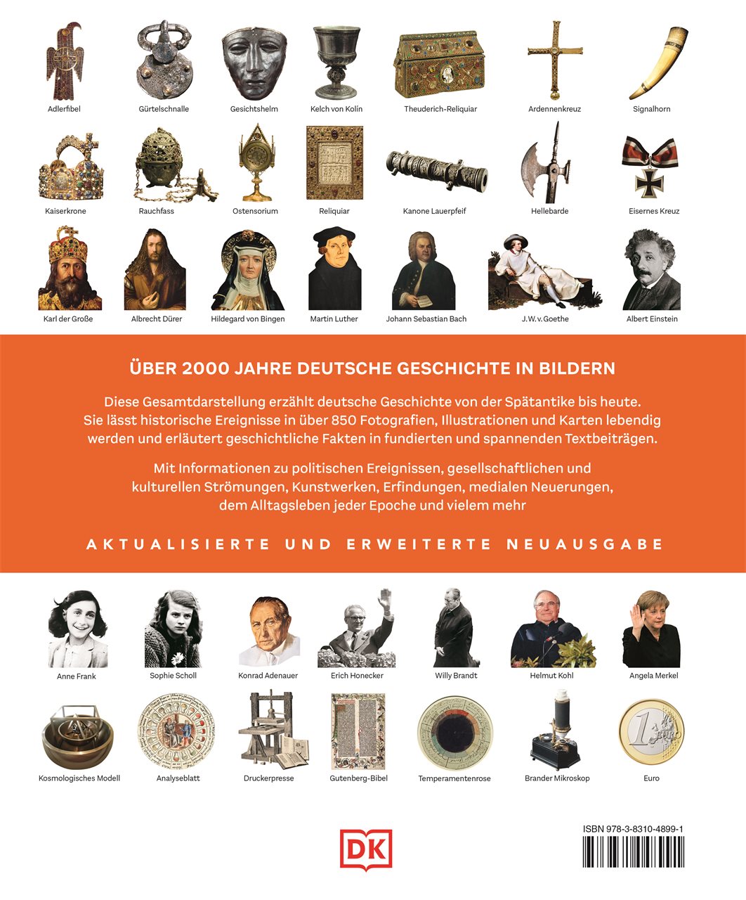 Energiewende, Klimaschutz, demografischer Wandel – heutzutage ist es wichtiger denn je, sich mit der deutschen Geschichte zu beschäftigen. Mit über 850 farbigen Fotos und Illustrationen ist diese opulente Enzyklopädie wissenschaftlich fundiertes Nachschlagewerk und spannender Bildband in einem. Jede Doppelseite vermittelt einen lebendigen Eindruck jeder Epoche der deutschen Geschichte, von der Spätantike bis zu aktuellen Themen wie Ukraine-Krieg, Energiewende und demografischem Wandel. Neben politischen Ereignissen zeichnen z. B. auch gesellschaftliche Strömungen, Kunstwerke, Erfindungen, mediale Neuerungen und das Alltagsleben der Zeit ein umfassendes Bild jeder Epoche. Zeittafeln, Vorher-/Nachher-Kästen & übersichtliche Merkkästen fassen das Wichtigste zusammen.
