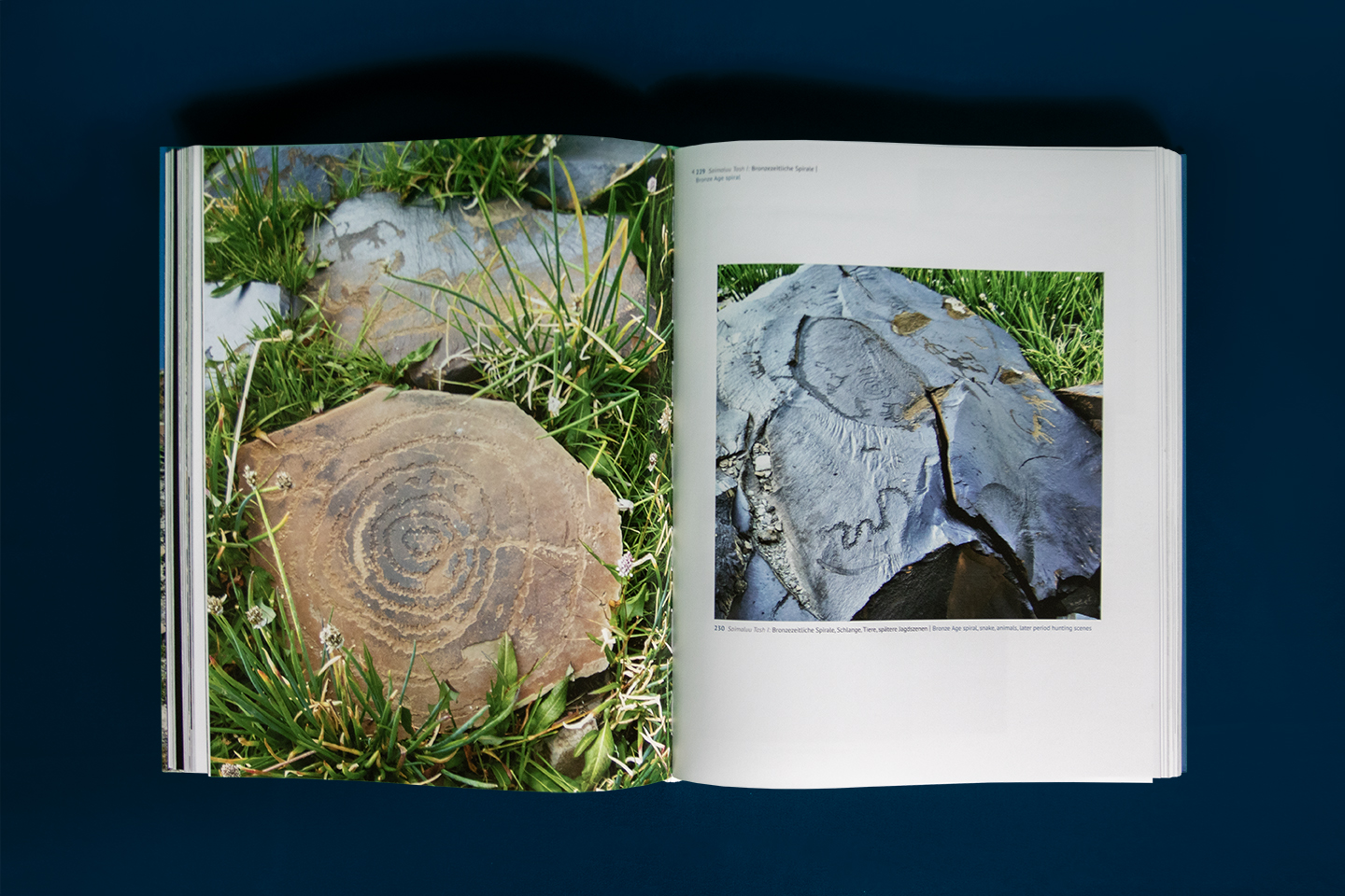 Saimaluu Tash in der Fergana-Kette mit über 10.000 verzierten Felsen steht im Zentrum dieses Bandes. Bilder aus vier weiteren Fundstätten bis nach Kasachstan hinüber, gelegen in atemberaubender Landschaft, ergänzen das Bild mit Zeichnungen auch der Skythen und Alttürken.