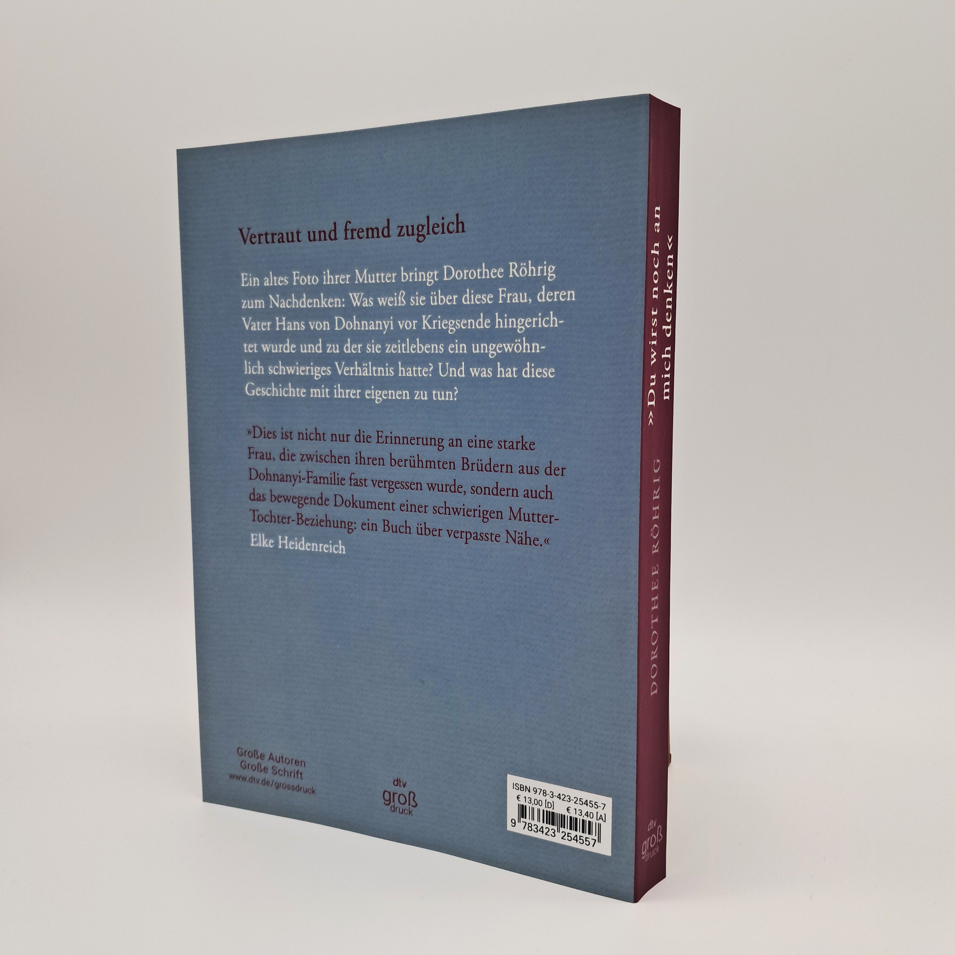 Als Dorothee Röhrig auf ein altes Foto ihrer Mutter stößt, setzt sich ein Gedankenkarussell in Bewegung. Was weiß sie über diese Frau, die 18 war, als ihr Vater Hans von Dohnanyi hingerichtet wurde? Die Frau, die nach dem Krieg versuchte, ihre traumatisierte Mutter Christine in das Familienleben einzubetten - so wie die Autorin später selbst für ihre von Verlusten gezeichnete Mutter da war. Mit großer emotionaler Ehrlichkeit erzählt Dorothee Röhrig vom widersprüchlichen Verhältnis zu ihrer Mutter und der Rolle der Frauen in einer außergewöhnlichen Familie. Ein Nachdenken über die Ambivalenz der Gefühle und darüber, was es heißt, Teil einer Familie zu sein, die jedem Einzelnen viel abverlangt.