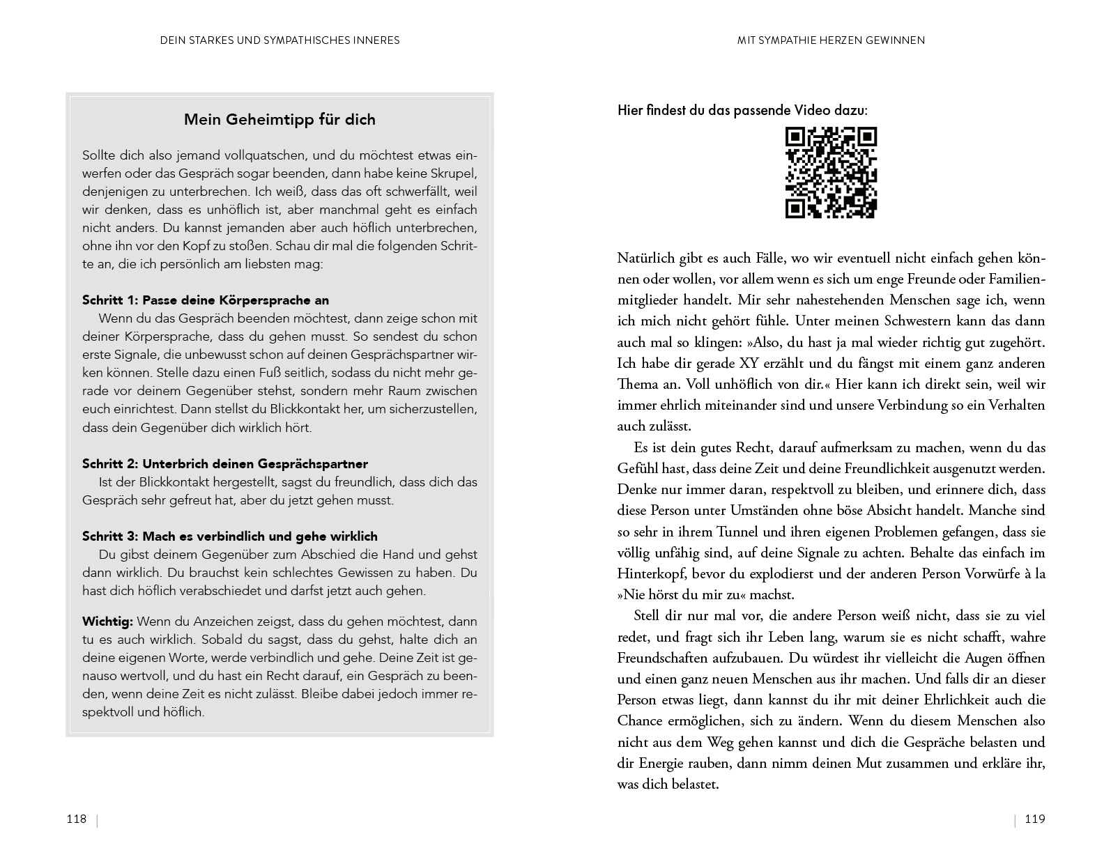 | Schlagworte | Auftritt • Ausstrahlung • Beziehungen • Charme • Erster Eindruck • Kommunikation • Körpersprache • Mimik • negative Gedanken • Persönlichkeit • Rhetorik • Schlagfertigkeit • Selbstbestimmt Leben • Selbstliebe • Selbstsicherheit • Small Talk • Stimme • Sympathie • Wahrnehmung • Wirkung |
