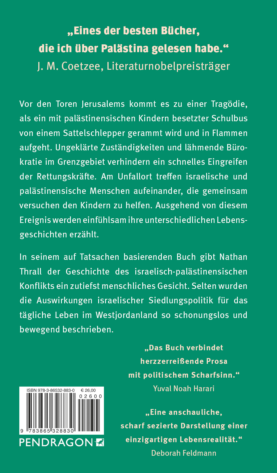 »Das Buch erzählt eine zutiefst bewegende Geschichte über einen tragischen Verkehrsunfall, der die Tragödie der Millionen Palästinenser beleuchtet, die unter israelischer Besatzung leben.« Yuval Noah Harari