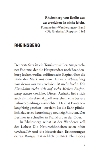 In Rheinsberg fand Fontane, was ein attraktives Reiseziel für seine »Wanderungen« haben musste: "Naturschönheiten" und "historische Erinnerungen ersten Ranges". Robert Rauh ist den Spuren des Dichters gefolgt und zeichnet unterhaltsam und humorvoll das Panorama eines Ortes, an dem sich Geschichte und Gegenwart begegnen.