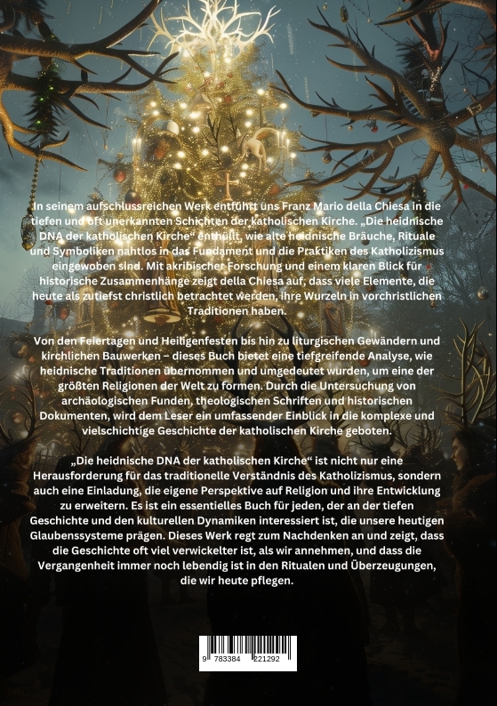 In seinem aufschlussreichen Werk entführt uns Franz Mario della Chiesa in die tiefen und oft unerkannten Schichten der katholischen Kirche. "Die heidnische DNA der katholischen Kirche" enthüllt, wie alte heidnische Bräuche, Rituale und Symboliken nahtlos in das Fundament und die Praktiken des Katholizismus eingewoben sind. Mit akribischer Forschung und einem klaren Blick für historische Zusammenhänge zeigt della Chiesa auf, dass viele Elemente, die heute als zutiefst christlich betrachtet werden, ihre Wurzeln in vorchristlichen Traditionen haben.Von den Feiertagen und Heiligenfesten bis hin zu liturgischen Gewändern und kirchlichen Bauwerken - dieses Buch bietet eine tiefgreifende Analyse, wie heidnische Traditionen übernommen und umgedeutet wurden, um eine der größten Religionen der Welt zu formen. Durch die Untersuchung von archäologischen Funden, theologischen Schriften und historischen Dokumenten, wird dem Leser ein umfassender Einblick in die komplexe und vielschichtige Geschichte der katholischen Kirche geboten."Die heidnische DNA der katholischen Kirche" ist nicht nur eine Herausforderung für das traditionelle Verständnis des Katholizismus, sondern auch eine Einladung, die eigene Perspektive auf Religion und ihre Entwicklung zu erweitern. Es ist ein essentielles Buch für jeden, der an der tiefen Geschichte und den kulturellen Dynamiken interessiert ist, die unsere heutigen Glaubenssysteme prägen. Dieses Werk regt zum Nachdenken an und zeigt, dass die Geschichte oft viel verwickelter ist, als wir annehmen, und dass die Vergangenheit immer noch lebendig ist in den Ritualen und Überzeugungen, die wir heute pflegen.