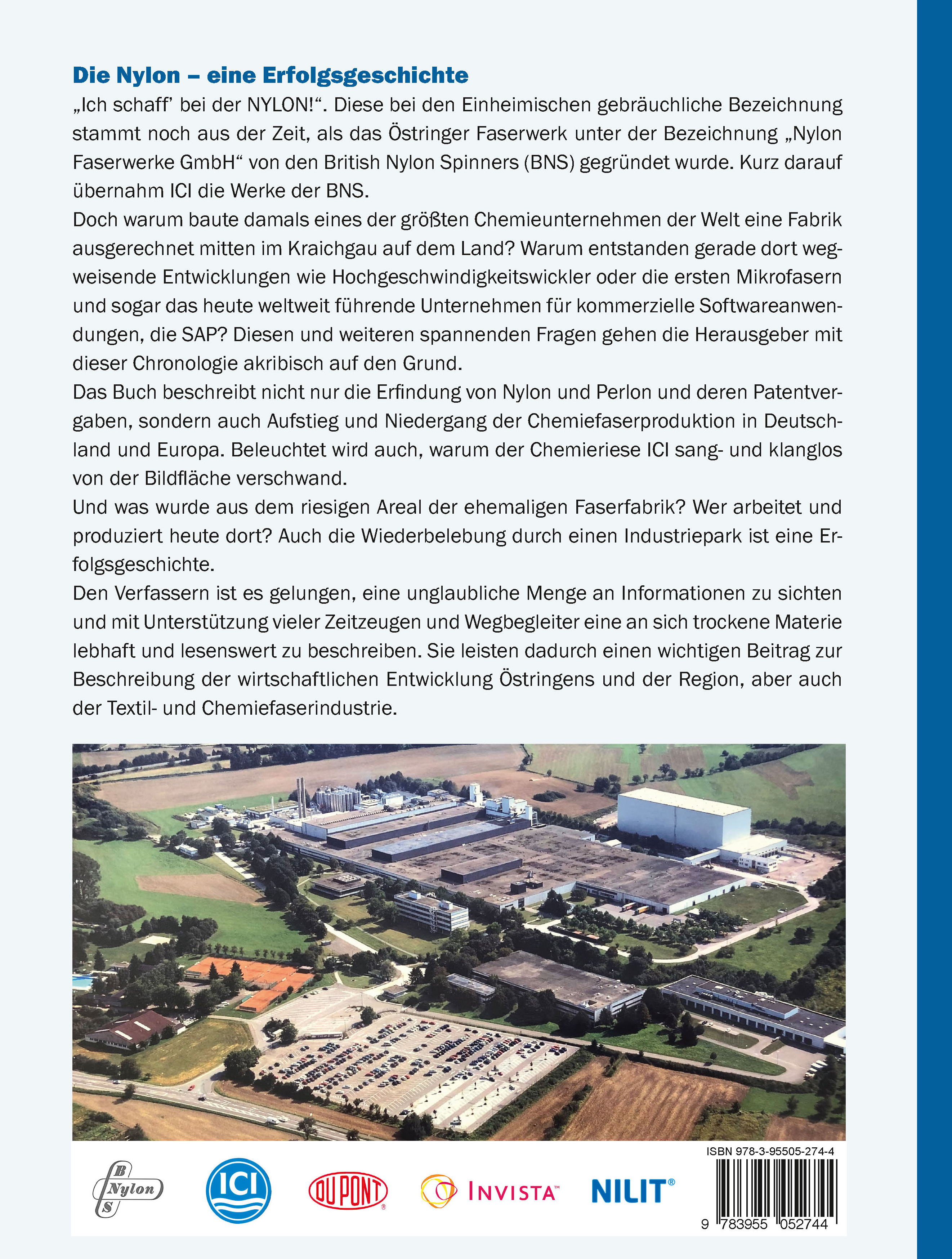 "Ich schaff' bei der NYLON!". Diese bei den Einheimischen gebräuchliche Bezeichnung stammt noch aus der Zeit, als das Östringer Faserwerk unter der Bezeichnung "Nylon Faserwerke GmbH" von den British Nylon Spinners (BNS) gegründet wurde. Kurz darauf übernahm ICI die Werke der BNS. Doch warum baute damals eines der größten Chemieunternehmen der Welt eine Fabrik ausgerechnet mitten im Kraichgau auf dem Land? Warum entstanden gerade dort wegweisende Entwicklungen wie Hochgeschwindigkeitswickler oder die ersten Mikrofasern und sogar das heute weltweit führende Unternehmen für kommerzielle Softwareanwendungen, die SAP? Diesen und weiteren spannenden Fragen gehen die Herausgeber mit dieser Chronologie akribisch auf den Grund.Das Buch beschreibt nicht nur die Erfindung von Nylon und Perlon und deren Patentvergaben, sondern auch Aufstieg und Niedergang der Chemiefaserproduktion in Deutschland und Europa. Beleuchtet wird auch, warum der Chemieriese ICI sang- und klanglos von der Bildfläche verschwand.Und was wurde aus dem riesigen Areal der ehemaligen Faserfabrik? Wer arbeitet und produziert heute dort? Auch die Wiederbelebung durch einen Industriepark ist eine Erfolgsgeschichte.Den Verfassern ist es gelungen, eine unglaubliche Menge an Informationen zu sichten und mit Unterstützung vieler Zeitzeugen und Wegbegleiter eine an sich trockene Materie lebhaft und lesenswert zu beschreiben. Sie leisten dadurch einen wichtigen Beitrag zur Beschreibung der wirtschaftlichen Entwicklung Östringens und der Region, aber auch der Textil- und Chemiefaserindustrie.