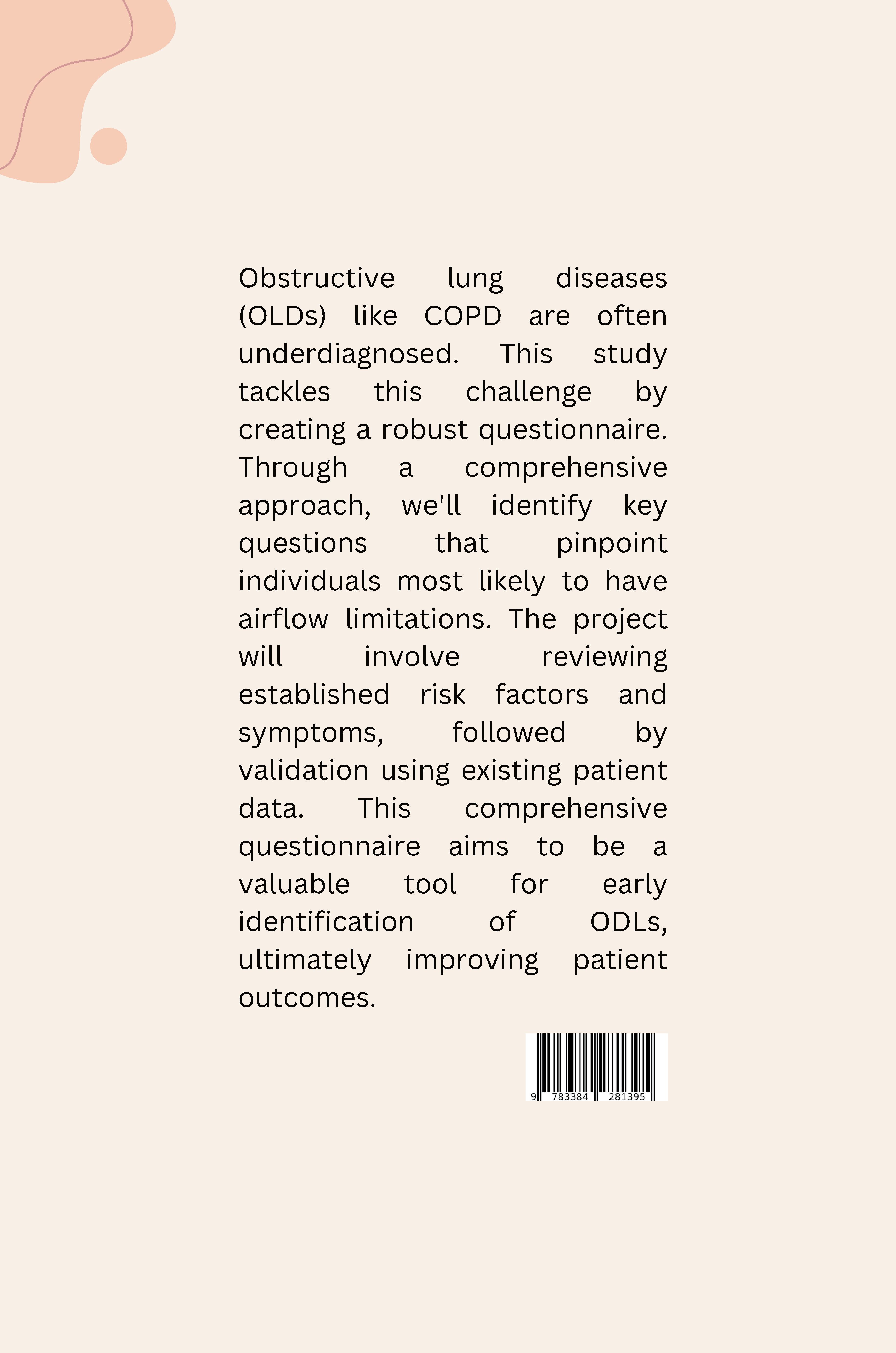 Professor Dr. Shaban M. is a highly respected researcher with extensive experience in the field of respiratory medicine, particularly obstructive lung diseases. Academic Credentials Briefly list Prof. Dr. Shaban M.'s relevant academic degrees (e.g., PhD, MD) and the institutions where they were obtained. Professional Experience Highlight Prof. Dr. Shaban M.'s current position and affiliation (e.g., Professor at [University Name]). Mention previous relevant positions held (e.g., researcher, department head). Research Focus Briefly describe Prof. Dr. Shaban M.'s area of expertise within obstructive lung diseases (e.g., diagnosis, specific conditions). Mention any relevant research methodologies employed (e.g., clinical trials, questionnaire development). Publications Briefly acknowledge Prof. Dr. Shaban M.'s publication history in peer-reviewed journals related to obstructive lung diseases. This book, "Developing a Questionnaire for Obstructive Lung Disease: A Comprehensive Study," represents a culmination of Prof. Dr. Shaban M.'s expertise and dedication to improving the diagnosis and management of these prevalent conditions. Word count: Approximately 250 words Please note: This is a template, and you may need to modify it based on Prof. Dr. Shaban M.'s specific background and accomplishments.
