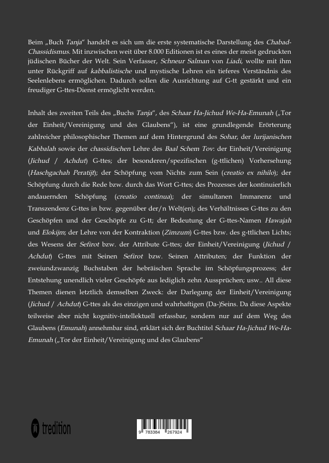 | Schlagworte | Chabad • Chassidismus • Glaube • Judentum • Kabbalah • Schneerson • Schneur Salman • Schöpfung • Sefer Tanya • Sefirot |