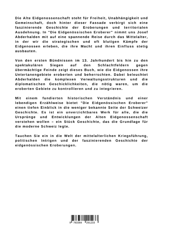 Die Alte Eidgenossenschaft steht für Freiheit, Unabhängigkeit und Gemeinschaft, doch hinter dieser Fassade verbirgt sich eine faszinierende Geschichte der Eroberungen und territorialen Ausdehnung. In "Die Eidgenössischen Eroberer" nimmt uns Josef Abderhalden mit auf eine spannende Reise durch das Mittelalter, in der wir die strategischen und oft blutigen Kämpfe der Eidgenossen erleben, die ihre Macht und ihren Einfluss stetig ausbauten.Von den ersten Bündnissen im 13. Jahrhundert bis hin zu den spektakulären Siegen auf den Schlachtfeldern gegen übermächtige Feinde zeigt dieses Buch, wie die Eidgenossen ihre Untertanengebiete eroberten und beherrschten. Dabei beleuchtet Abderhalden die komplexen Verwaltungsstrukturen und die diplomatischen Geschicklichkeiten, die nötig waren, um die eroberten Gebiete zu kontrollieren und zu integrieren.Mit einem fundierten historischen Verständnis und einer lebendigen Erzählweise bietet "Die Eidgenössischen Eroberer" einen tiefen Einblick in die weniger bekannte Seite der Schweizer Geschichte. Es ist ein unverzichtbares Werk für alle, die die Ursprünge und Entwicklungen der Alten Eidgenossenschaft verstehen wollen - ein Stück Geschichte, das die Grundlage für die moderne Schweiz legte.Tauchen Sie ein in die Welt der mittelalterlichen Kriegsführung, politischen Intrigen und der faszinierenden Geschichte der eidgenössischen Eroberungen.