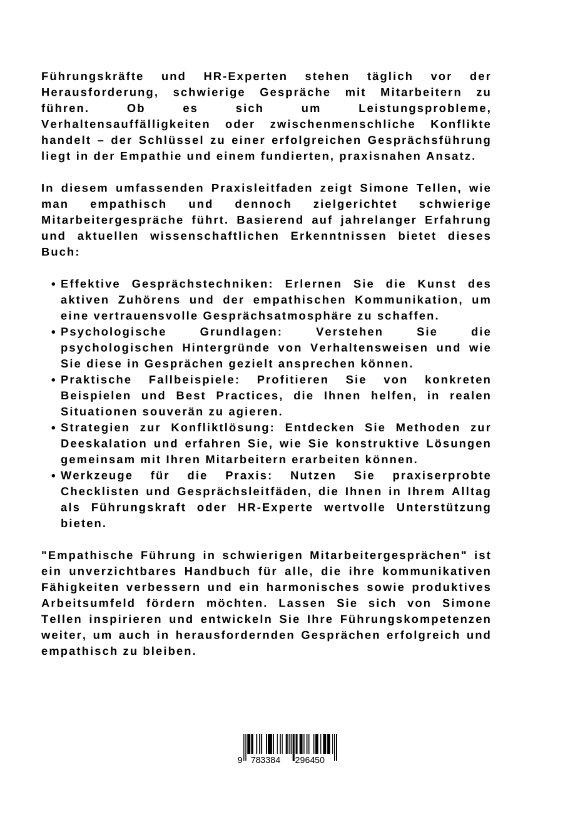 | Schlagworte | Arbeitspsychologie • Effektive Führung • Empatische Fü¨hrung • Führungstechniken • HR-Strategien • Kommunikation • Konflikt • Mitarbeiterführung • Mitarbeitergespräche • Personalentwicklung • psychologische Gesprächsführung • Stressbewältigung |
