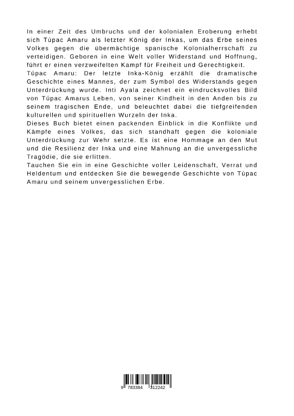 In einer Zeit des Umbruchs und der kolonialen Eroberung erhebt sich Túpac Amaru als letzter König der Inkas, um das Erbe seines Volkes gegen die übermächtige spanische Kolonialherrschaft zu verteidigen. Geboren in eine Welt voller Widerstand und Hoffnung, führt er einen verzweifelten Kampf für Freiheit und Gerechtigkeit.Túpac Amaru: Der letzte Inka-König erzählt die dramatische Geschichte eines Mannes, der zum Symbol des Widerstands gegen Unterdrückung wurde. Inti Ayala zeichnet ein eindrucksvolles Bild von Túpac Amarus Leben, von seiner Kindheit in den Anden bis zu seinem tragischen Ende, und beleuchtet dabei die tiefgreifenden kulturellen und spirituellen Wurzeln der Inka.Dieses Buch bietet einen packenden Einblick in die Konflikte und Kämpfe eines Volkes, das sich standhaft gegen die koloniale Unterdrückung zur Wehr setzte. Es ist eine Hommage an den Mut und die Resilienz der Inka und eine Mahnung an die unvergessliche Tragödie, die sie erlitten.Tauchen Sie ein in eine Geschichte voller Leidenschaft, Verrat und Heldentum und entdecken Sie die bewegende Geschichte von Túpac Amaru und seinem unvergesslichen Erbe.
