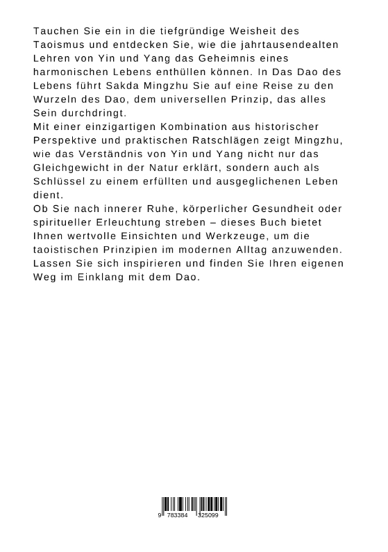 Tauchen Sie ein in die tiefgründige Weisheit des Taoismus und entdecken Sie, wie die jahrtausendealten Lehren von Yin und Yang das Geheimnis eines harmonischen Lebens enthüllen können. In "Das Dao des Lebens" führt Sakda Mingzhu Sie auf eine Reise zu den Wurzeln des Dao, dem universellen Prinzip, das alles Sein durchdringt. Mit einer einzigartigen Kombination aus historischer Perspektive und praktischen Ratschlägen zeigt Mingzhu, wie das Verständnis von Yin und Yang nicht nur das Gleichgewicht in der Natur erklärt, sondern auch als Schlüssel zu einem erfüllten und ausgeglichenen Leben dient. Ob Sie nach innerer Ruhe, körperlicher Gesundheit oder spiritueller Erleuchtung streben - dieses Buch bietet Ihnen wertvolle Einsichten und Werkzeuge, um die taoistischen Prinzipien im modernen Alltag anzuwenden. Lassen Sie sich inspirieren und finden Sie Ihren eigenen Weg im Einklang mit dem Dao.