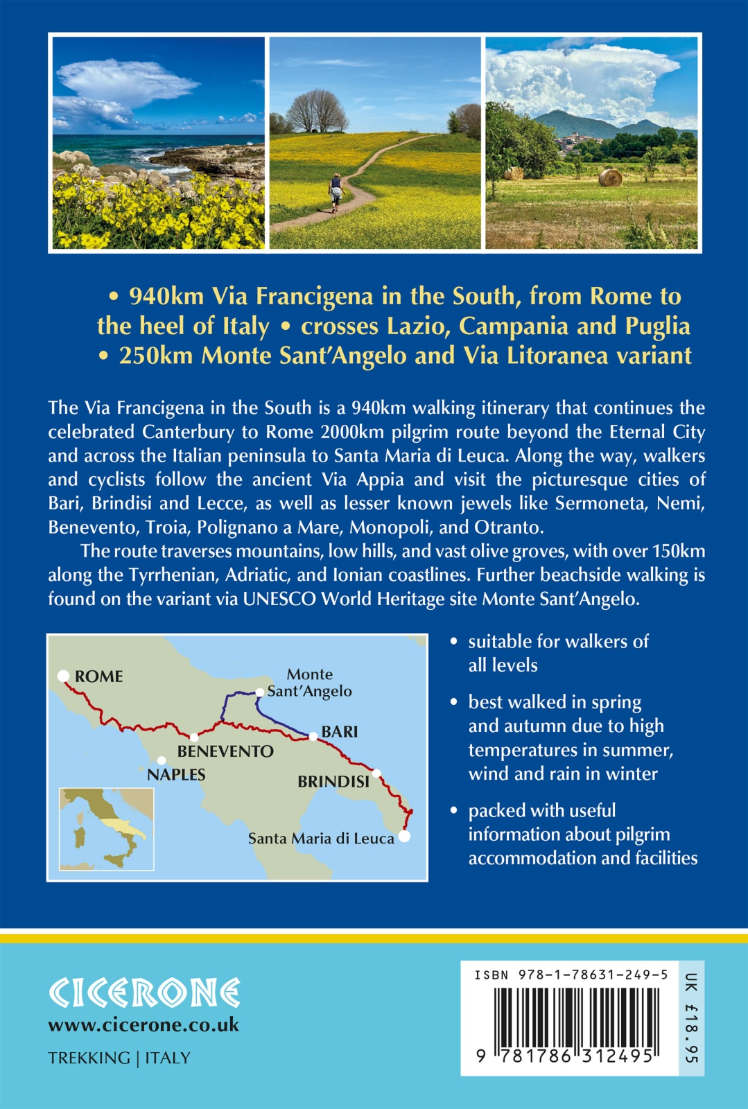 A guidebook to walking the final section of the Via Francigena pilgrimage. Part of a four-volume set, this volume covers the 940km historic route from Rome to Santa Maria di Leuca in Puglia.