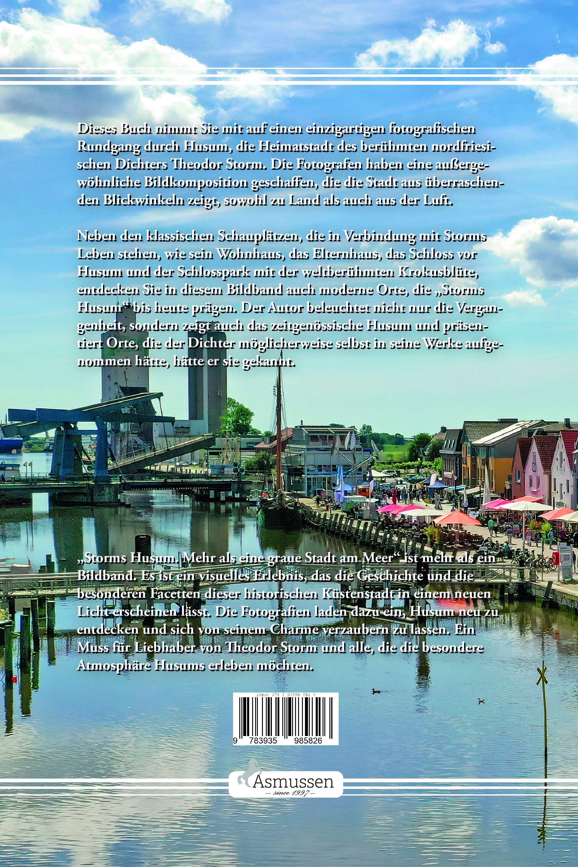 Dieses Buch nimmt Sie mit auf einen einzigartigen fotografischen Rundgang durch Husum, die Heimatstadt des berühmten nordfriesischen Dichters Theodor Storm. Die Fotografen haben eine außergewöhnliche Bildkomposition geschaffen, die die Stadt aus überraschenden Blickwinkeln zeigt, sowohl zu Land als auch aus der Luft.